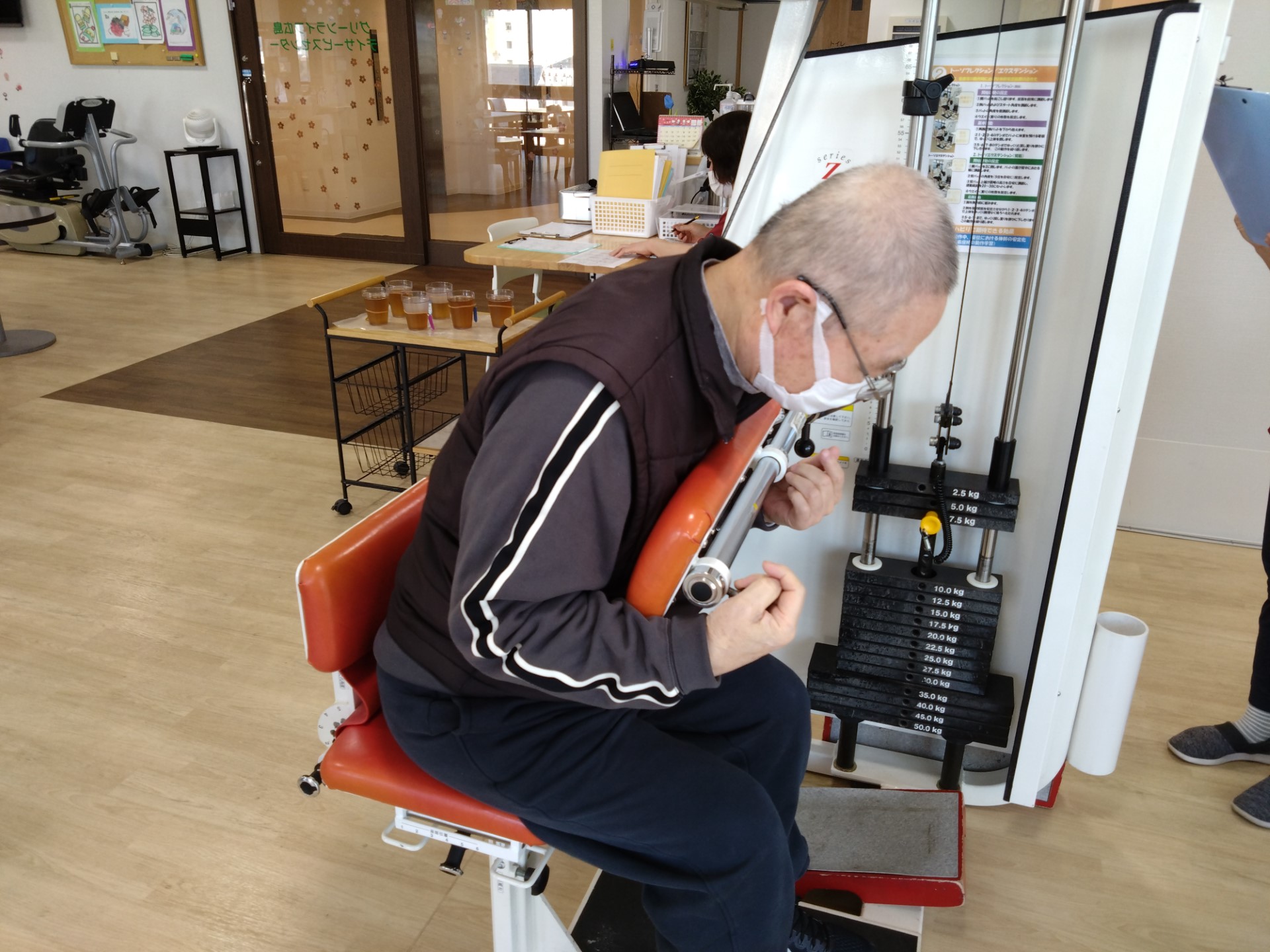 毎日1時間程入居者さんは訓練指導員と一緒に体操を行っていますが、今日は昼食後も体操をしている方がいらっしゃいました