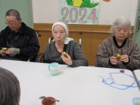 一月の終わりということで二月にちなんだ「立春」「如月」「節分」なども文字をお手本にしました。「ご自宅でお蕎麦屋さんをしていた方がいらっしゃり、「かも南ばん 九〇〇円」「かけそば 五〇〇円」などなど、お店のメニュー風に書いてくださった方がおり、「さすがですね!」「もっと書いて欲しい」と盛り上がりました。(*^_^*)