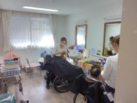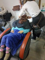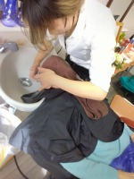 カラーリングをした後は、シャンプー台でシャンプーです。
