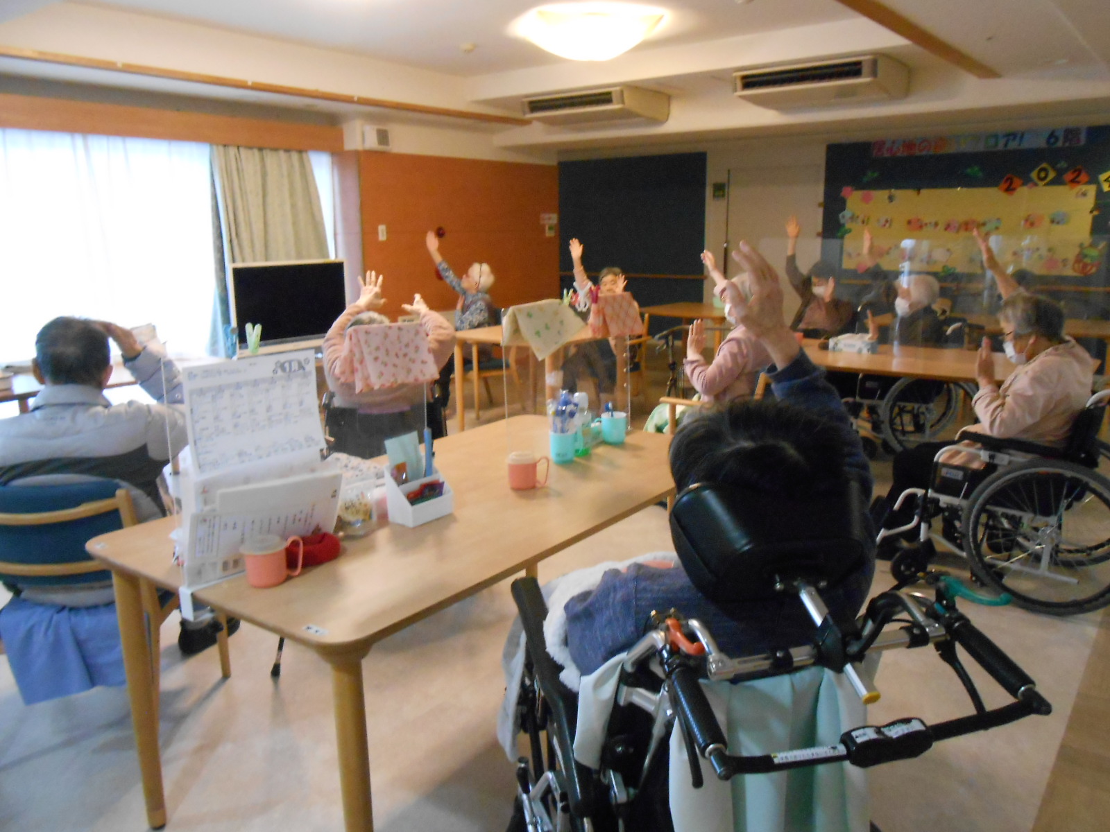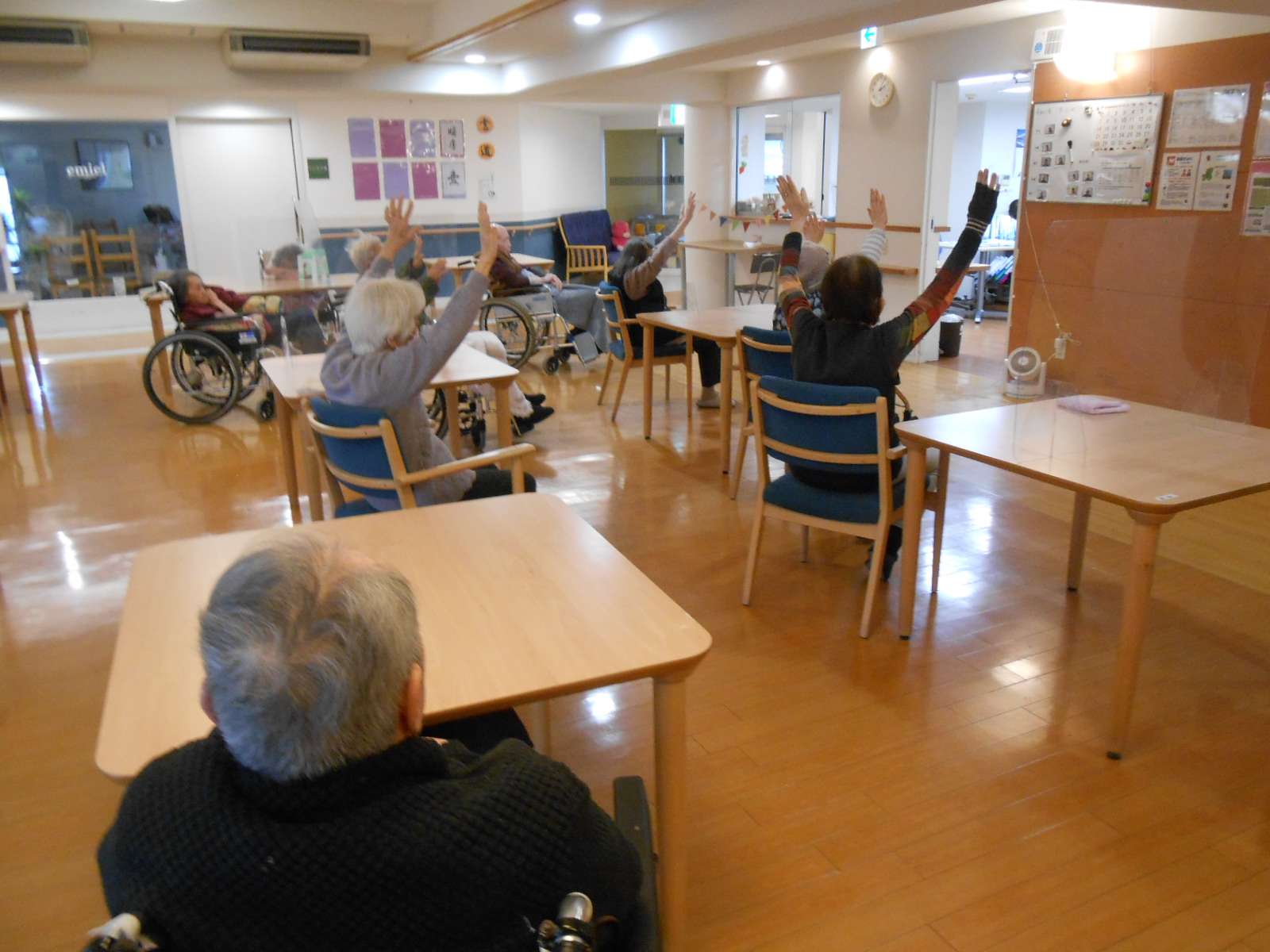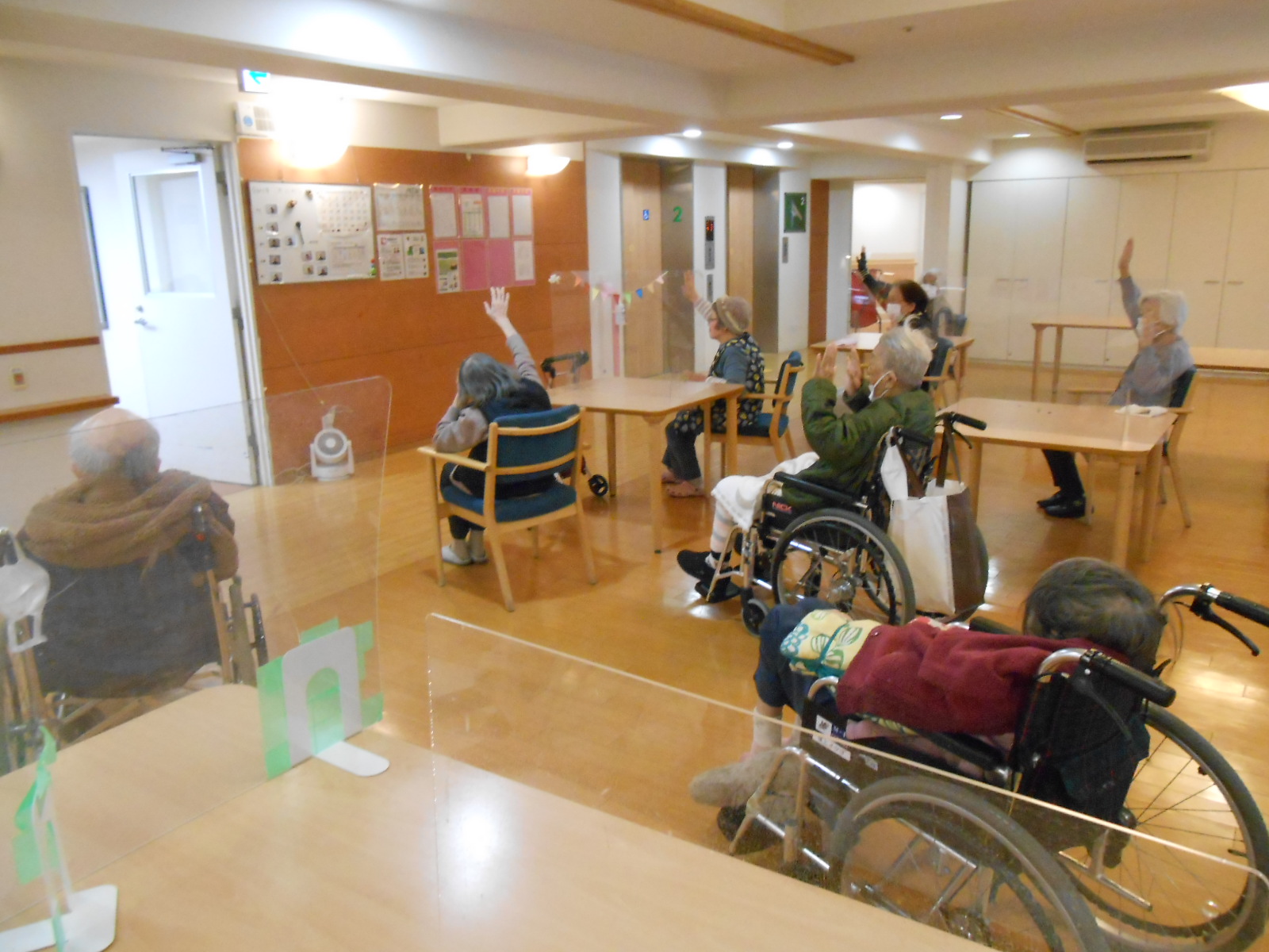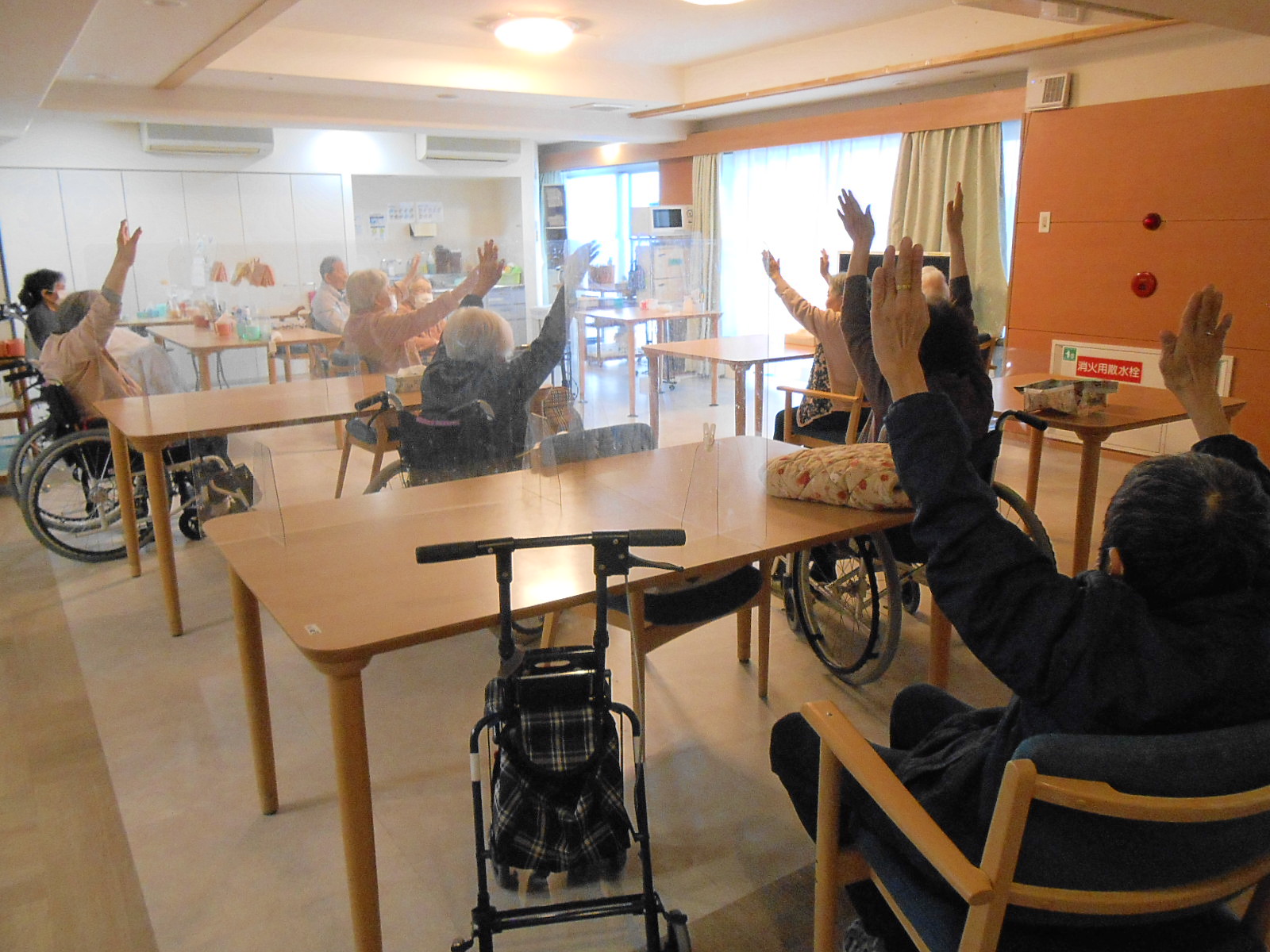 多くの入居者様に参加して頂き、立ち上がりや立位のままの