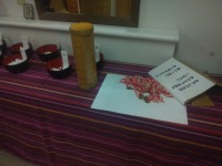 みんなで創作した巻き巻きだるまを入居者様も喜んでくれました。
