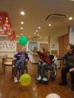お正月飾りに風船がぶつかり外れる前に何か所か取ってから開始。皆様も、その方が安心と言っていました。打つ気満々です( ´艸`)新年から風船が三つ割れて、驚き😲、アクシデント、笑いありの風船バレーで、今日も楽しんでいただけたようです。