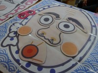 目隠しをして周りの方に応援してもらいながら目、鼻、口、眉毛を配置して