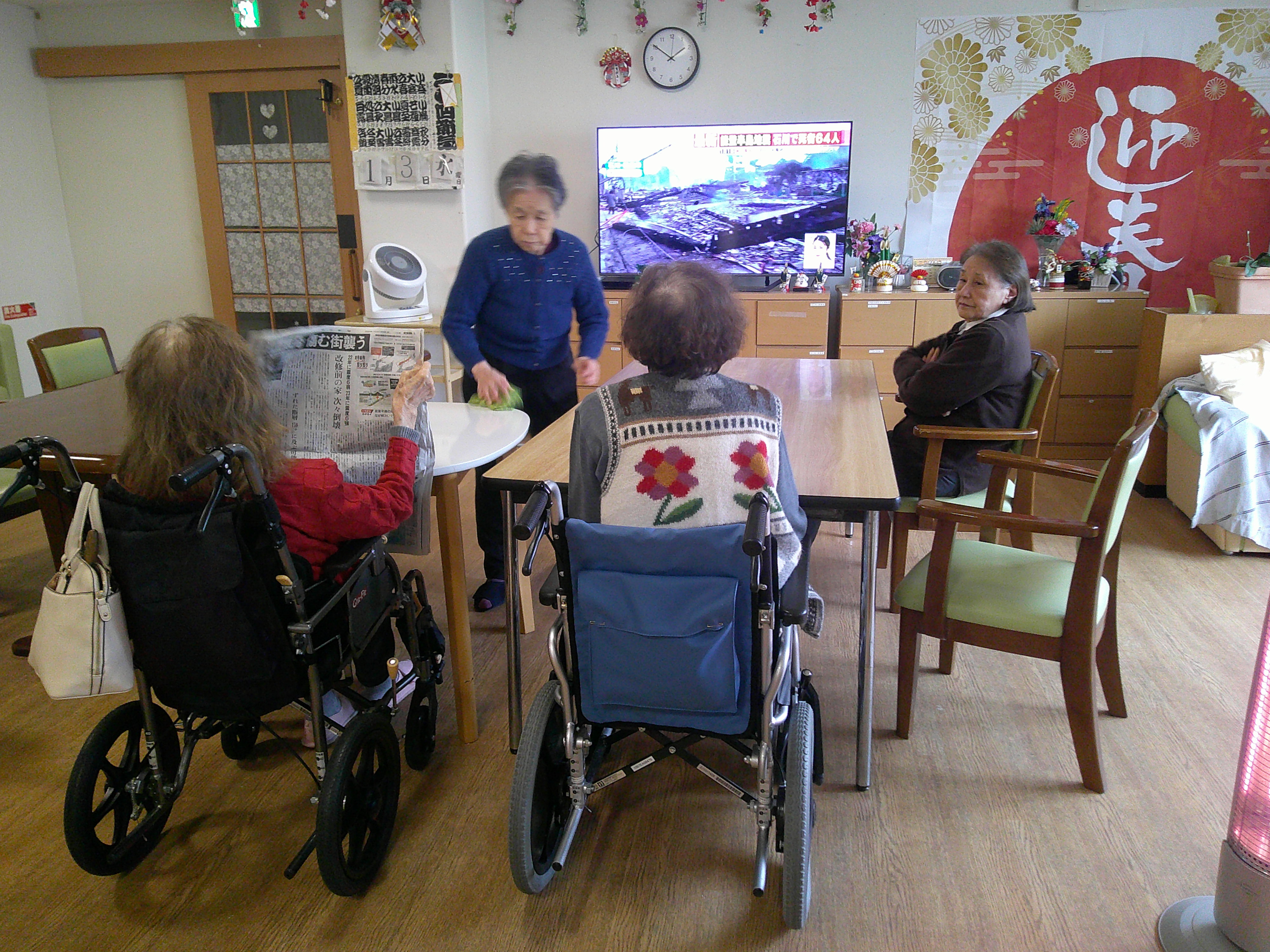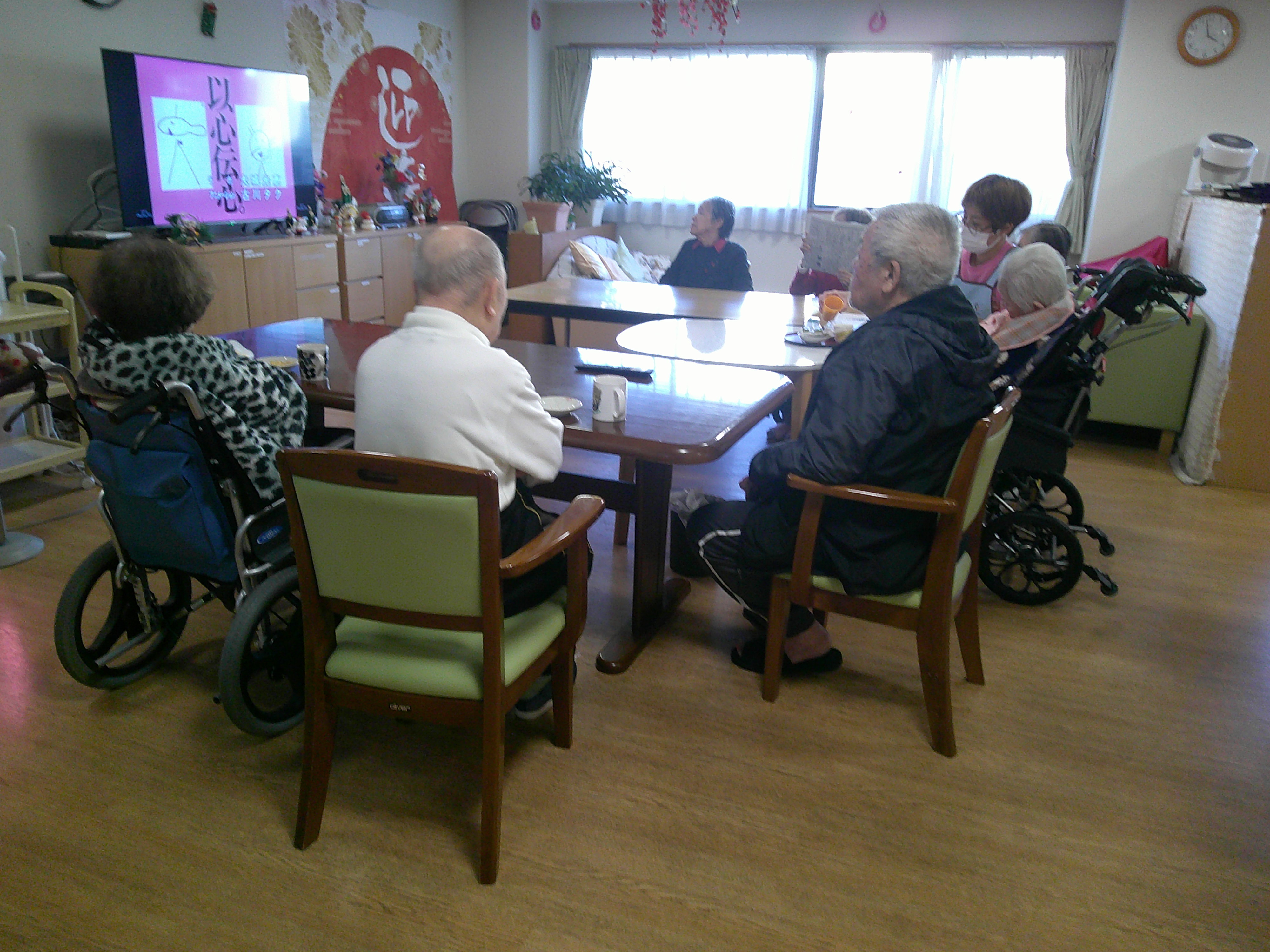 こんにちは、シーハーツ柏です。毎月2回、有志の入居者様で俳句を詠み合う「詠の集い」という活動をしています。1月4日 今年初の俳句を作成しました。面白い力作を紹介いたします。テーマは「鏡餅」 T様作「 土俵入り 横綱の腹 鏡餅 」 とってもいい表現で鏡餅が浮かびますね。力士のお腹とリンクするとは、、、。さすがです。 T様より、「年明けには大相撲も始まるので ((笑)」」 すばらしいです、 もう一句「 鏡餅 皆で割りて 小豆粥 」 「あずきがゆ」を食べる習慣があるそうです。地域によるようで、「小豆粥なんて初めて聞きますわ。」と、おっしゃる入居者様もいました。 シーハーツ神社にお祭りしている立派な鏡餅、鏡開き後は、なにに変身するのか楽しみです。
