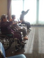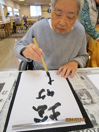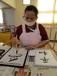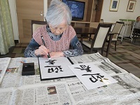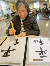 お正月仕様で入居者様が協力して飾りを制作してくれました(写真1枚目)。