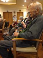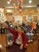 いつものように歌姫、歌殿の皆様が沢山、リクエストされ楽しまれていました。最後に「今年も元気で頑張りましょう、エイエイオー」と、力強く手を挙げてくださいました(^^♪