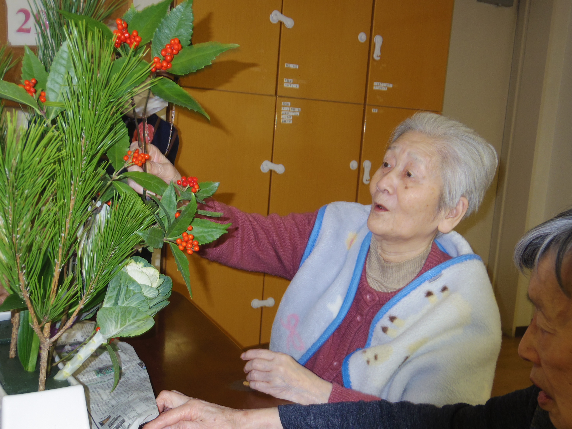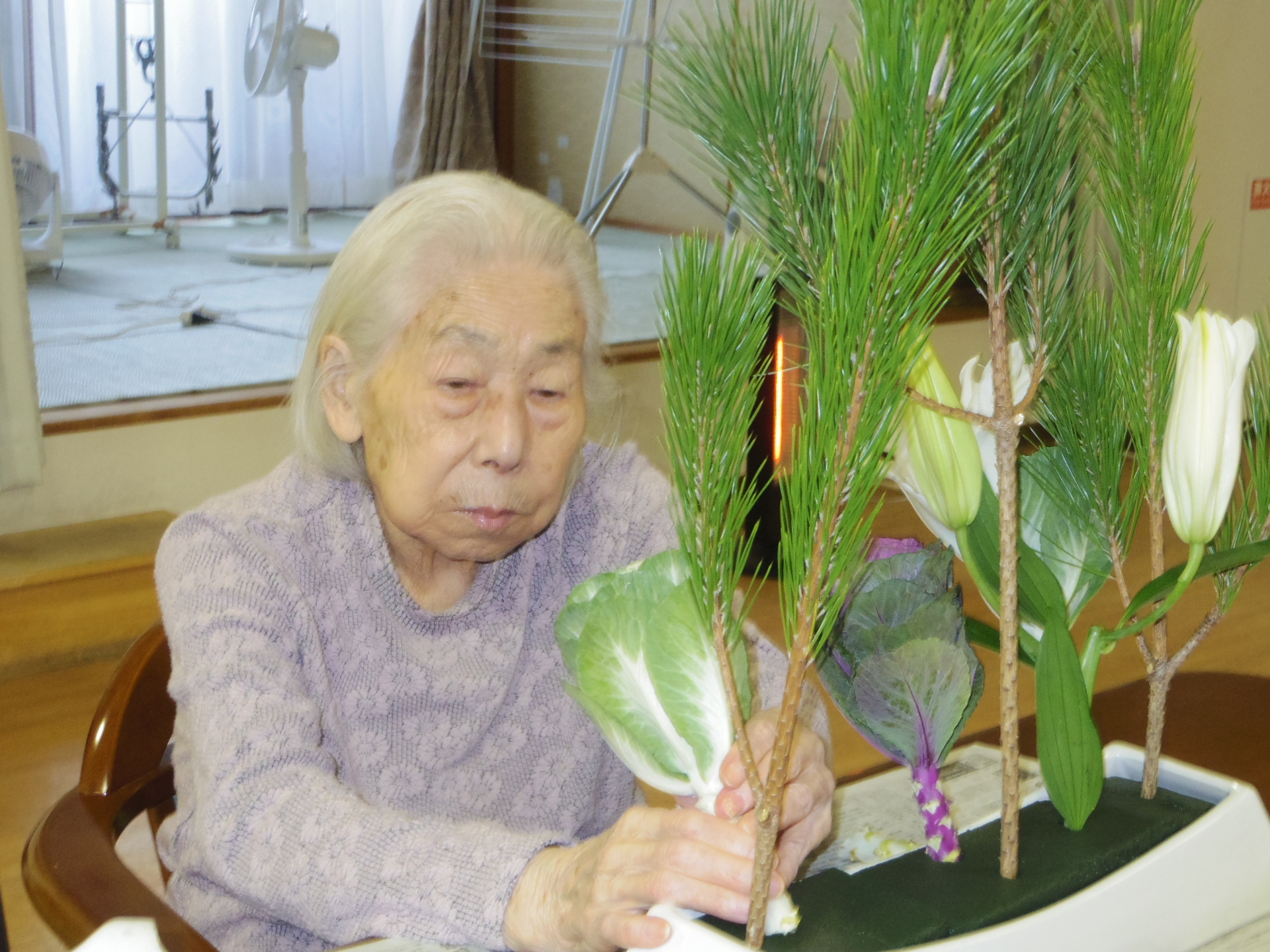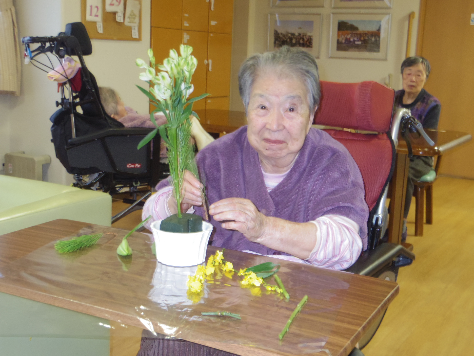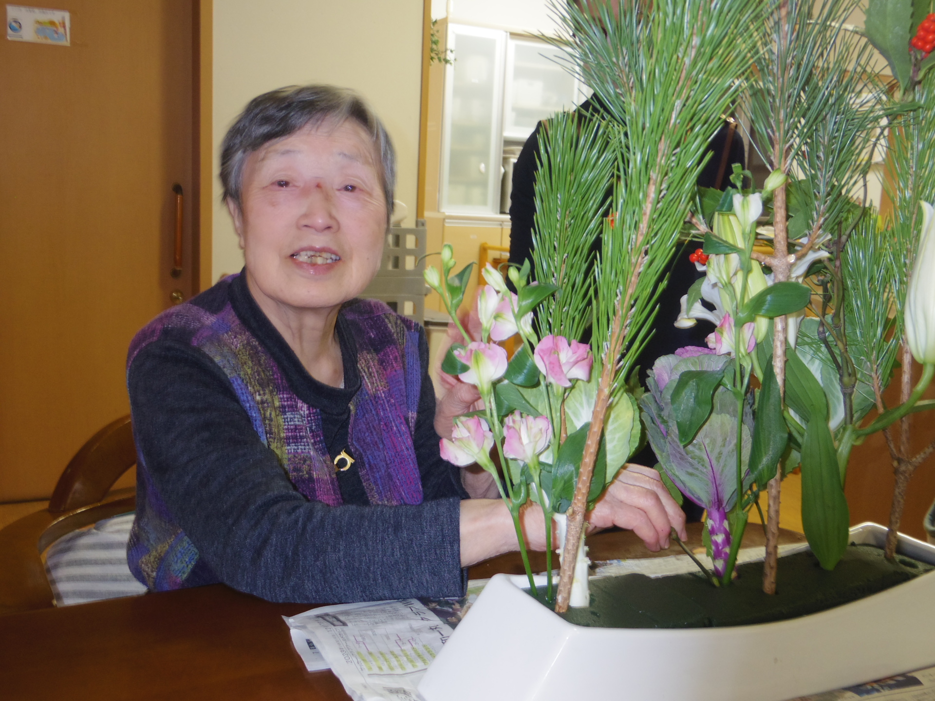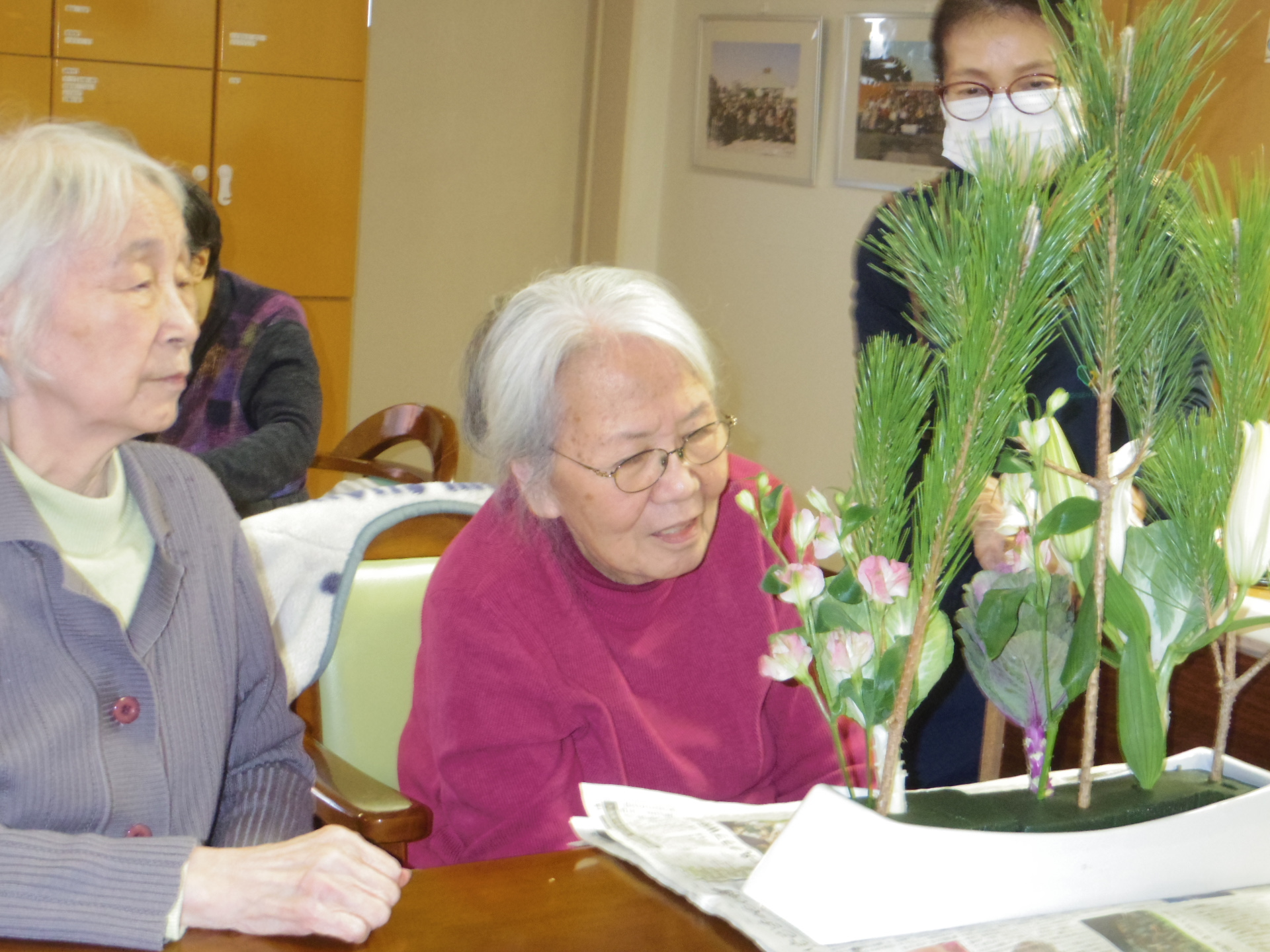 新年を祝って2階の皆さまと生け花会を行ないました!