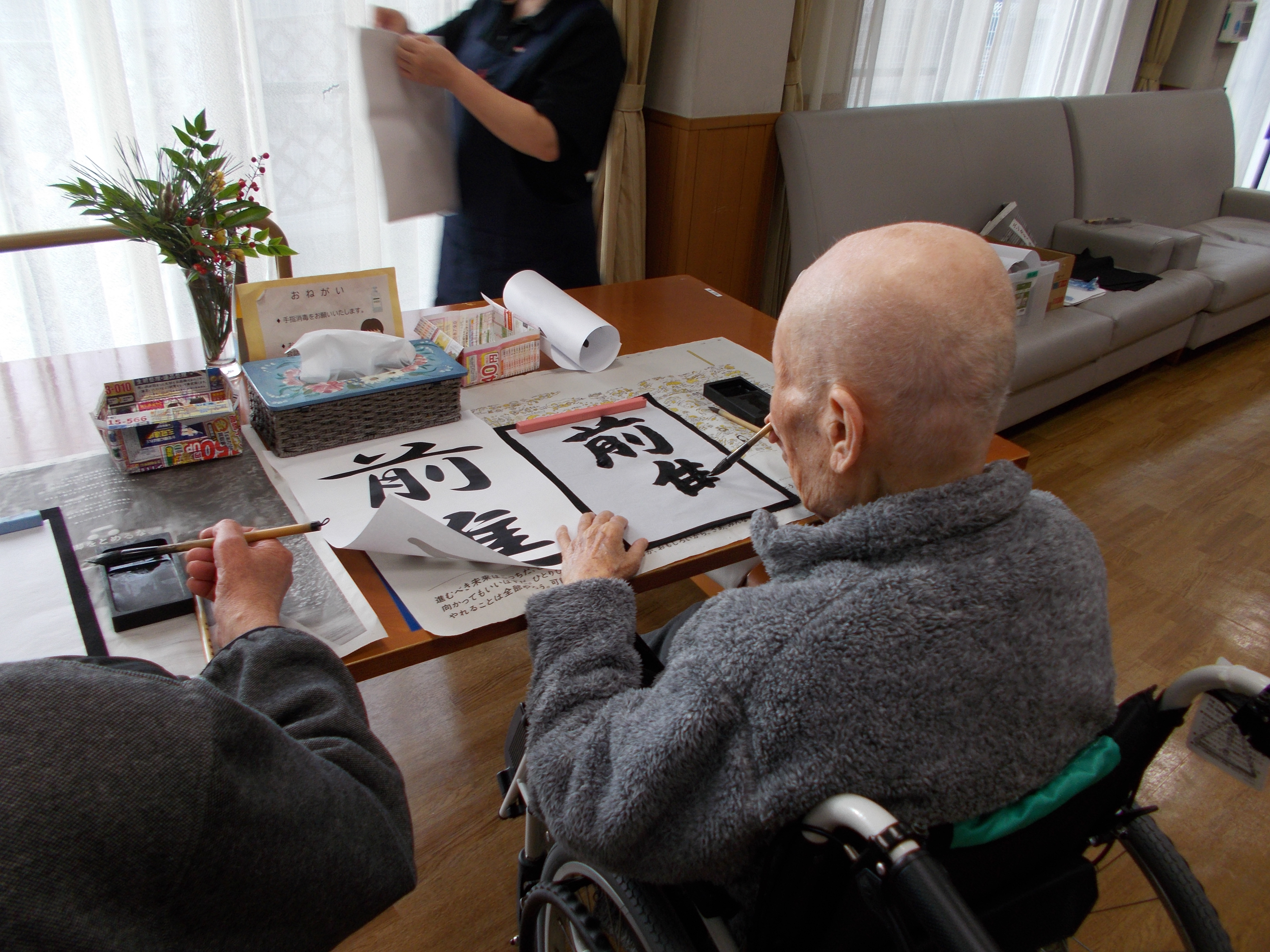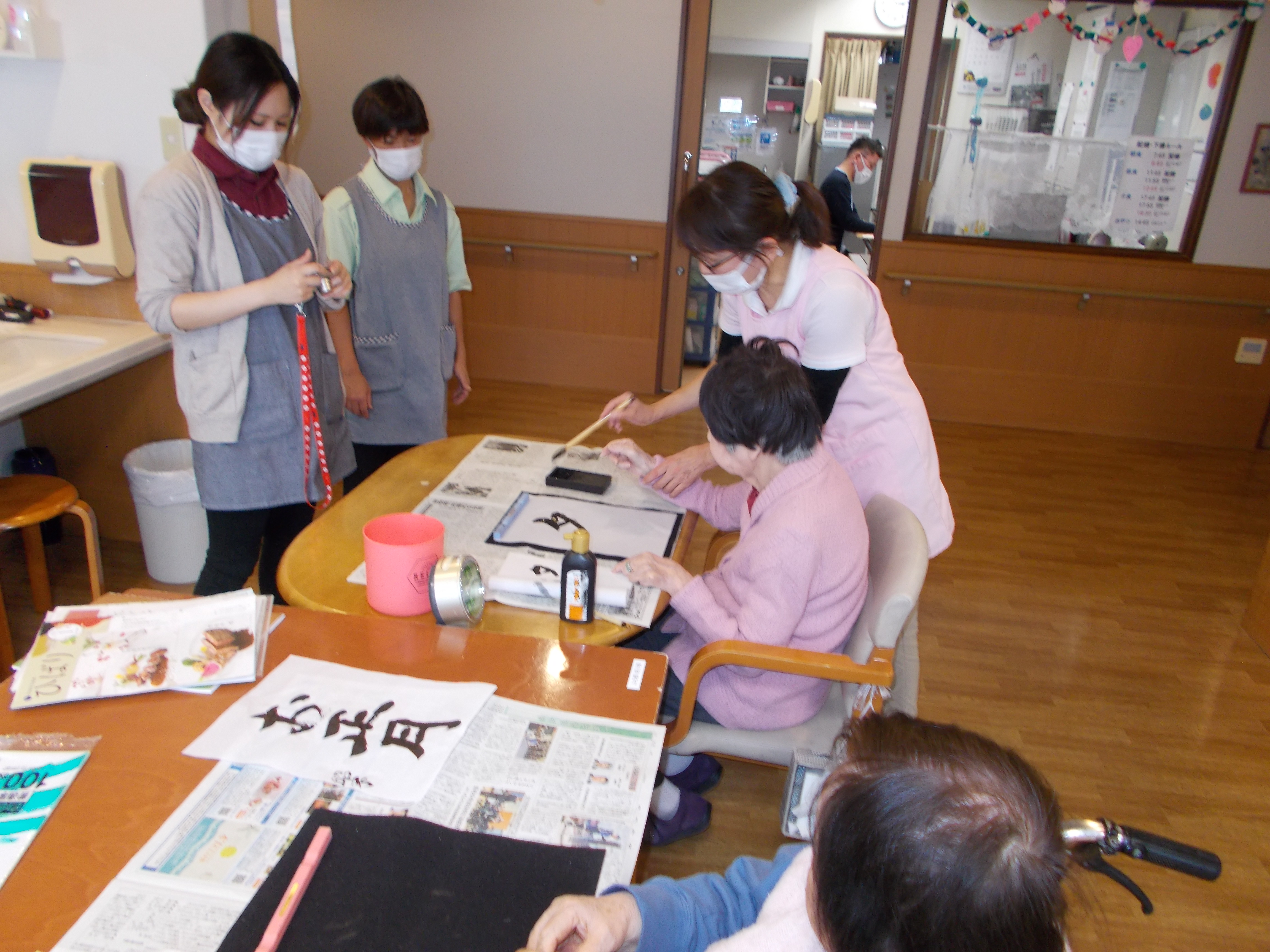 館内では、1階フロアでも2階フロアでも書初めでした。