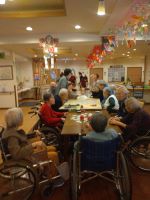 午後はお正月のレクリエーションで、コマ回し、けん玉、福笑い、羽根つき、百人一首、紙風船、お手玉を楽しんでいただきました。紙風船が人気で身体が熱くなる程、夢中でした。施設長がコマ回しが上手なのは以外でした( ´艸`)和気あいあいと、お正月から大笑いの皆様でした(^^♪)
