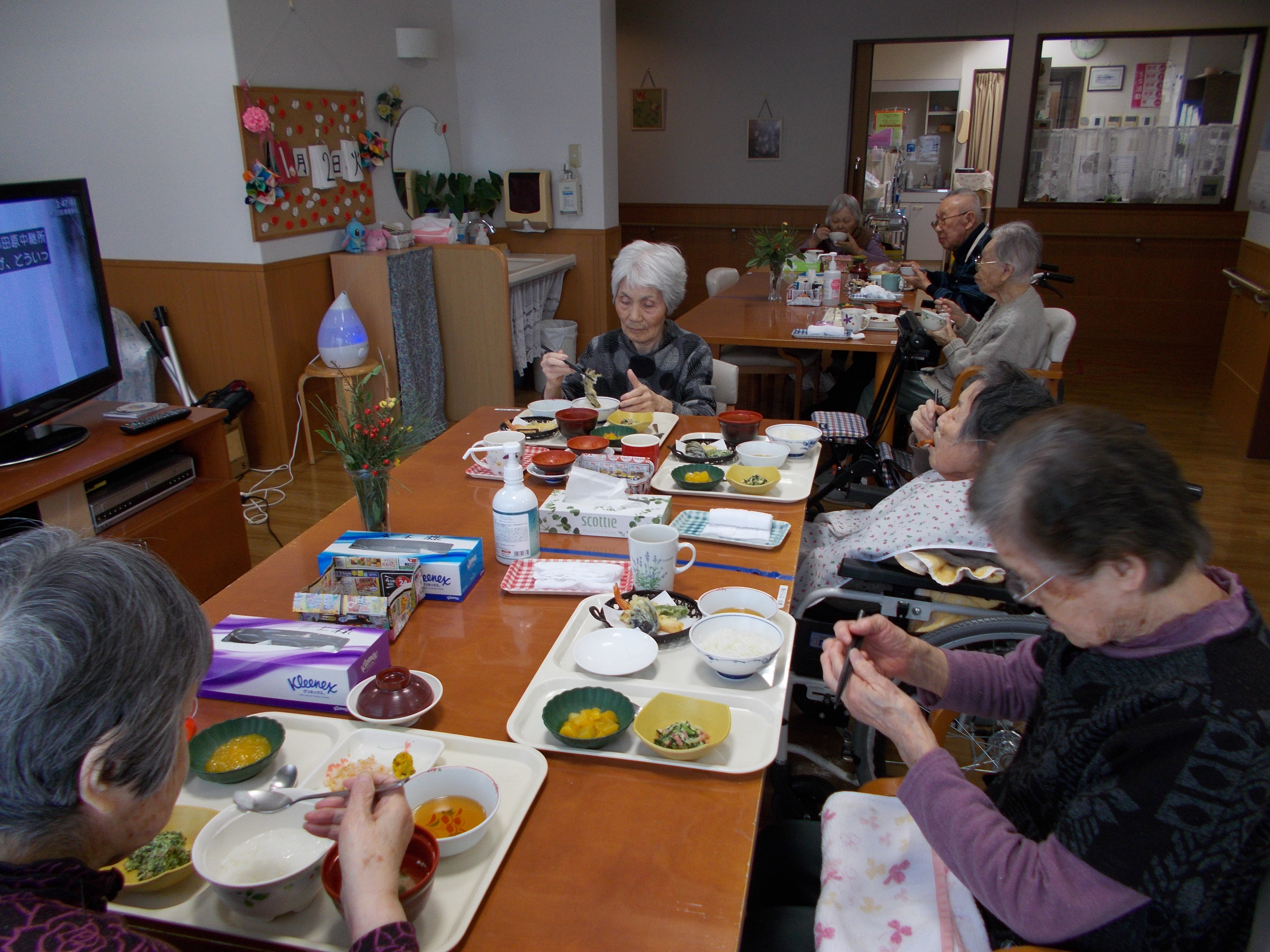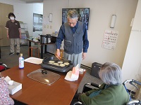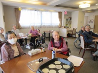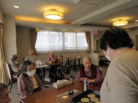 毎年、お正月は、干支の着ぐるみで甘酒を提供していましたが、今年は何か違う事がしたいと思い、リーダー達と検討した結果、餅つきがしたいとの話になりました。ただし、年末に餅つき行うには日程が決まらず、結果1月中旬に餅つきを行う事になりました。その代わりに、1月2日にお煎餅焼きを行う事になりました。午前中は、4階、5階のご入居者様に焼き立てのお煎餅を召し上がっていただきました。ご入居者様から、温かくて美味しかった。スタッフからは、お煎餅を焼いている香りがエレベーターまで届いていますと、シーハーツ川口では、初めてのお煎餅焼きでした。ご入居者様とスタッフにも好評でしたので、開催するつもりです。