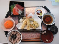 本日は、朝食は、お雑煮?とおせち。昼食は、天ぷらとお刺身と赤飯のお祝い御膳でした。ご入居者様から美味しかったとのお話もいただけましたので、お食事楽しまれたと思います。