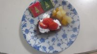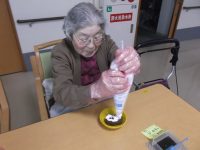 本日のおやつレクは、クリスマスケーキを入居者様と