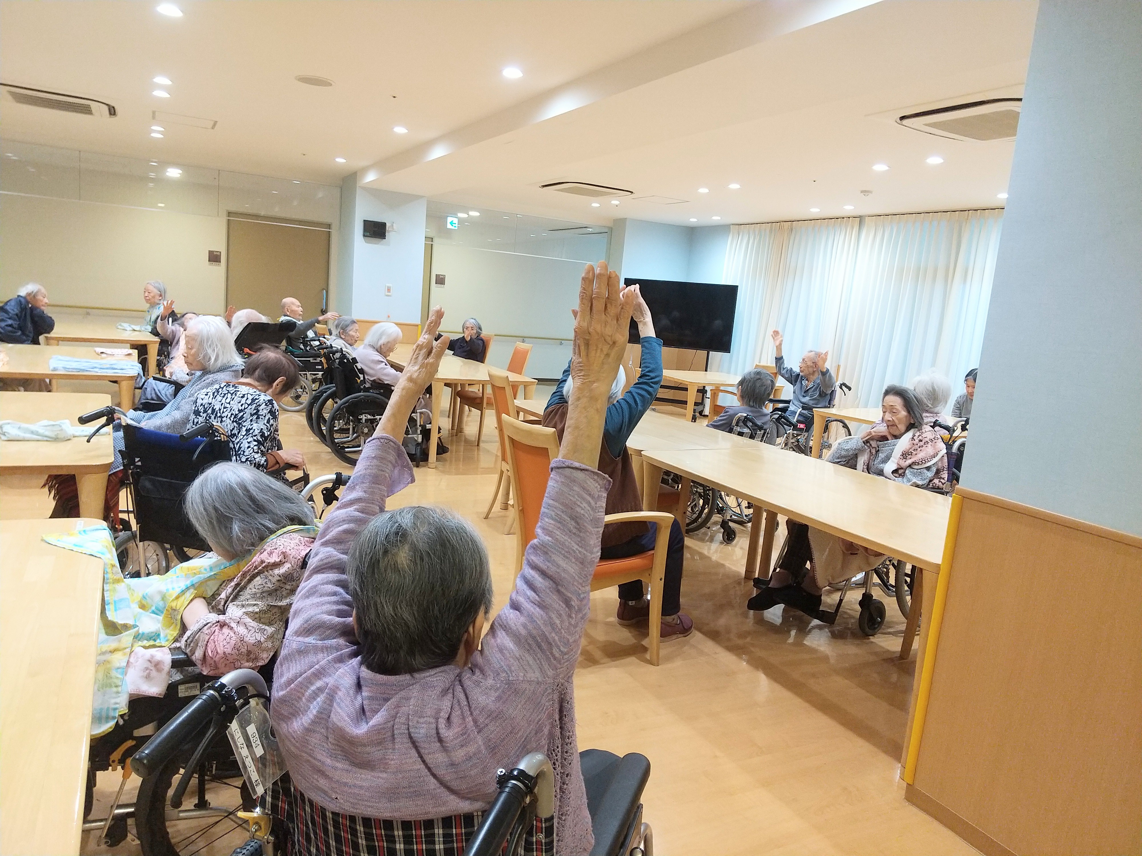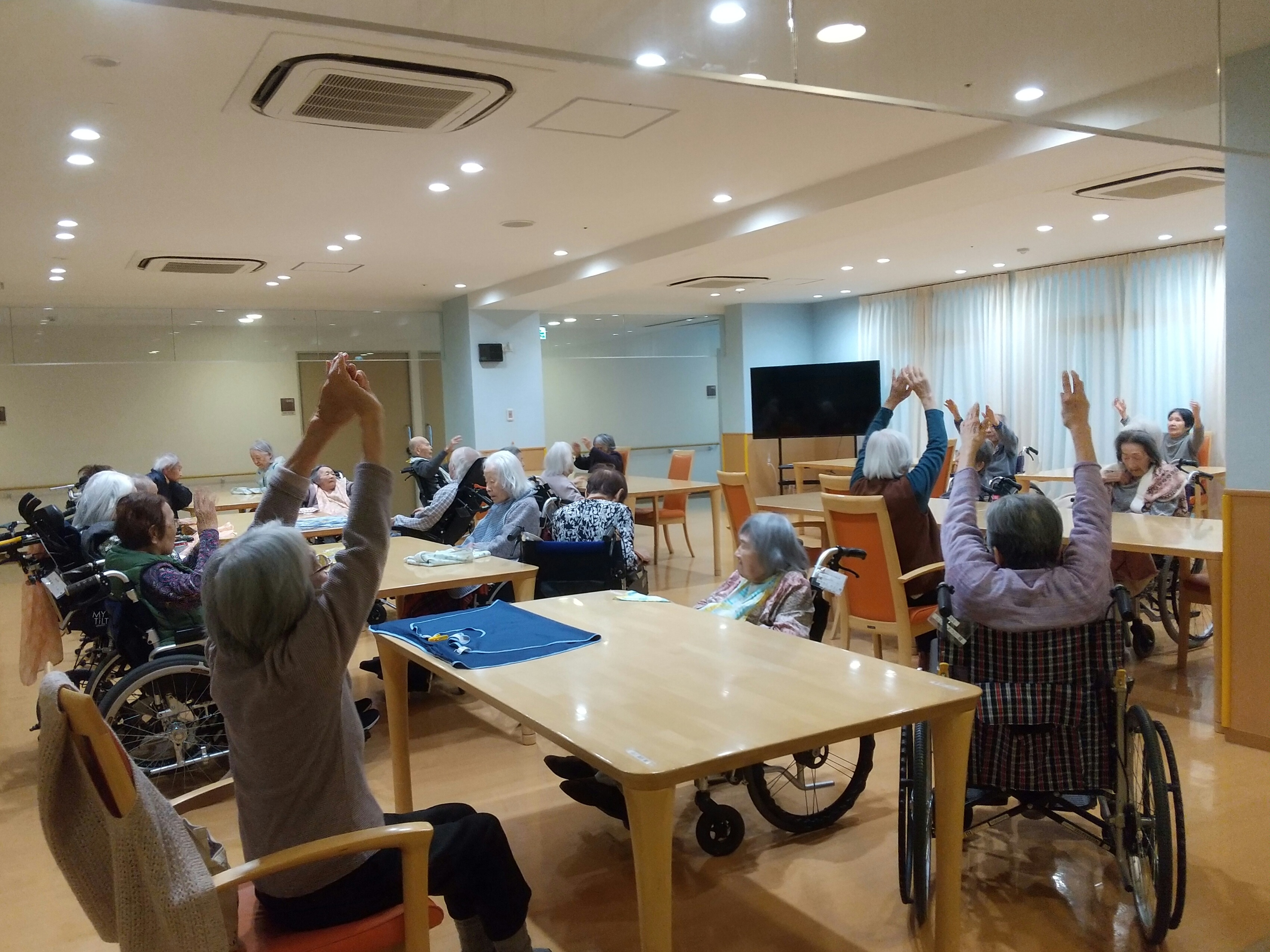 スタッフ真剣な顔で演奏していますが(笑)、入居者様は鈴を鳴らしたり太鼓を叩いて一緒に音楽を奏でていました!