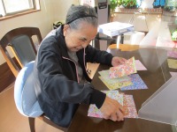 好みの千代紙を選び、年賀状を綺麗に飾り付け、それぞれが届けたい方へ心を込めてメッセージを書き上げられました。