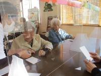 おやつの前に、サンタの帽子を被っていただき、歌を唄ったり、クイズして楽しんでいただきました。