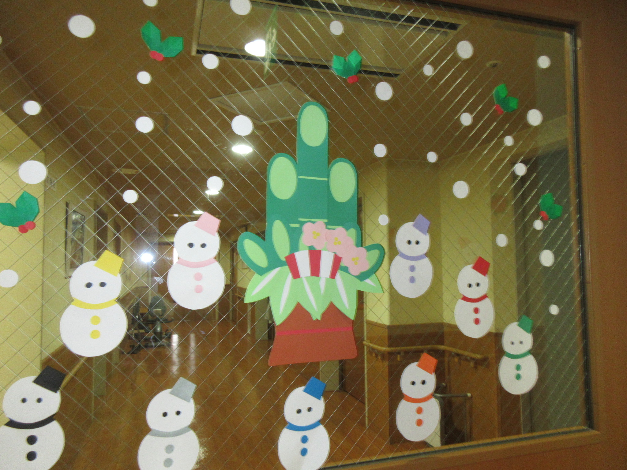 入居者様が作ったクリスマスツリーを慎重に壁に飾りました。