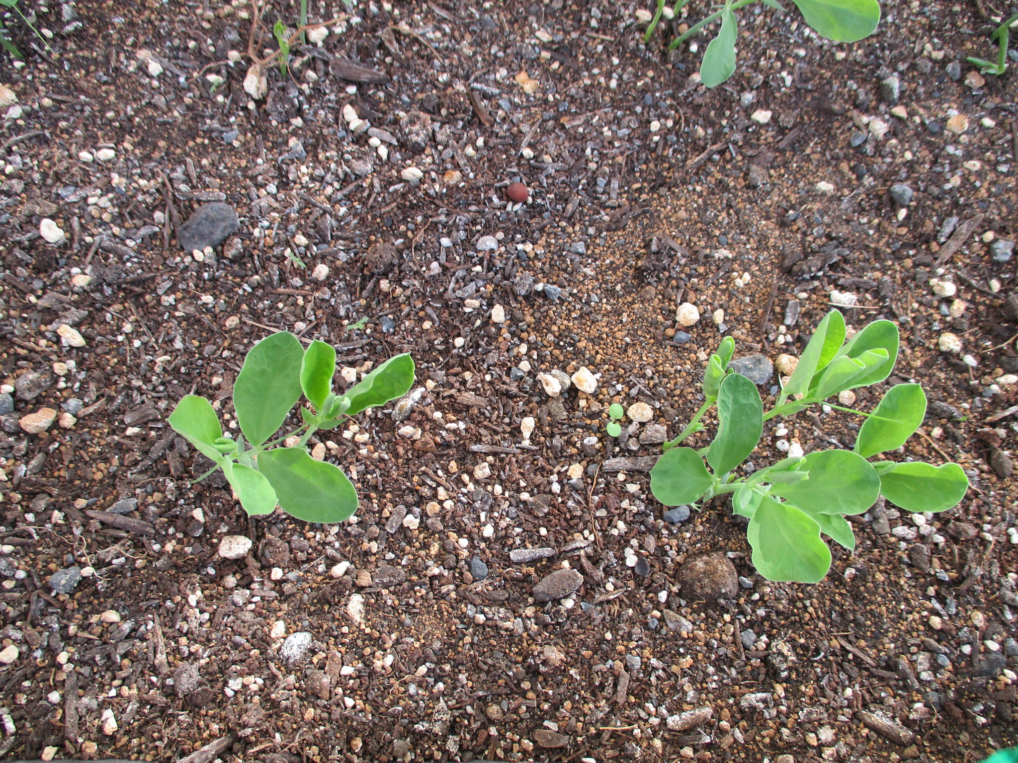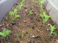 リハビリ室のベランダにスイートピーの種まきしました、本日、見に行ったら発芽して、