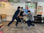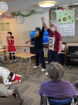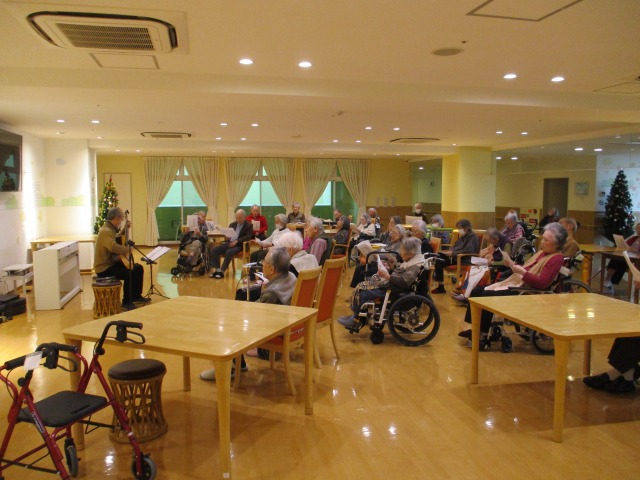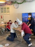 こんにちは、シーハーツ柏です。本日は、クリスマス会のゲームの様子をお伝えします。スタッフ同士の対決で、入居者様に勝者を当てていただき、正解した方には素敵なお菓子のプレゼント! ということで、本気で腕相撲。アピールタイムでは、上腕二頭筋のお披露目も((笑)勝者はケアスタッフの大井さん。大井さんと予想された入居者様は笑顔でにっこり。そして後半には、渡邊施設長もゲームに参戦です。このゲームはご覧になったかたも多いはず!「叩いてかぶってジャンケンポン!」 反射神経が要です。勝者の予想は、、「ふふーん。私はBかなぁ!」と、皆さんの前で笑顔で宣言された、入居者のK様。 なぜか、事務担当の岩﨑さんの支持率が施設長を上回る結果に。勝者は、、、なんと、渡邉施設長! 「あーあ↓💦」と声を漏らした入居者様のT様。少数派の入居者様がお菓子をGetする結果に((^^♥ また、全て正解という入居者様もいらっしゃって、両手いっぱいのお菓子♪ ゲームが終わったところで、鈴の音が聞こえてきます。 わぉ! 「みなさーん、お久しぶりです!北国から来ました~。」と手を振るサンタと可愛いトナカイの登場です! 続きは次回へ⇒