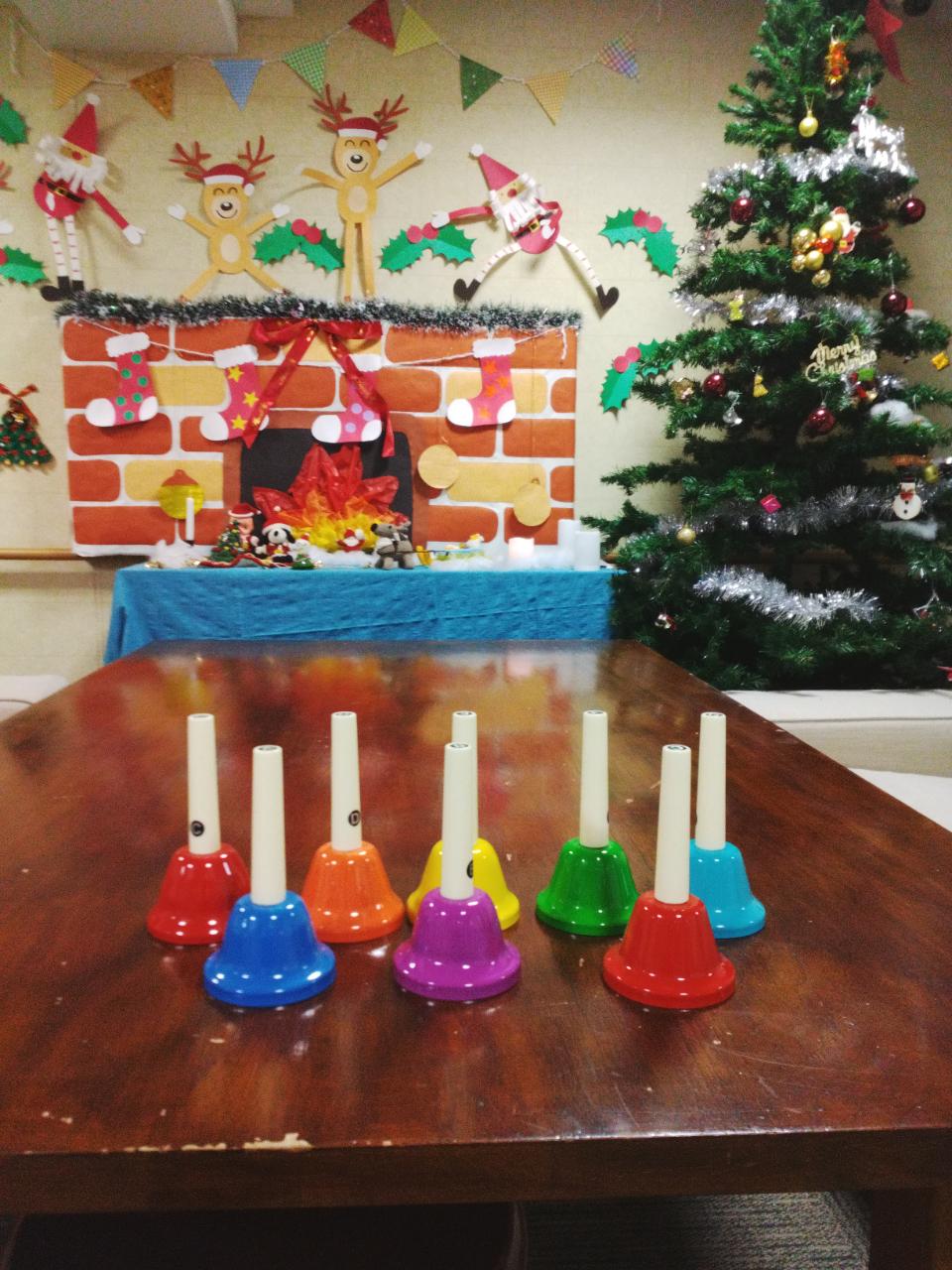 今回は、クリスマスの曲を歌ったり、鈴やカスタネットを演奏しました。