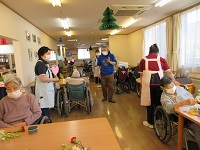 クリスマスにちなんだ曲だけでなく、入居者様になじみのある曲をメドレーで披露してくださったので、皆さんメロディに合わせて体を揺らしたり手拍子をしたりと、非常に楽しんでおられました。