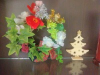そんな雰囲気の中、入居者様からも「これ!作って飾らせてもらってるの」と嬉しいお声が(^o^) 入居者様が、可愛らしいリースとツリーも作って下さいました(*^^*)