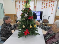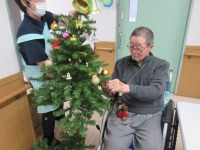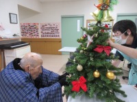 入居者様と一緒にクリスマスツリーの飾り付けを行いました。