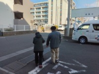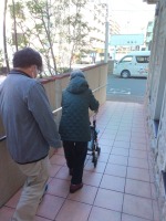 冬空ですが、入居者様ご相談のもとリハビリの時間にて「外、行きます?」「行きます」とのことで、いざ屋外歩行リハビリへ〜