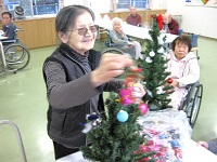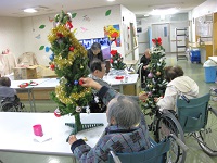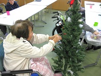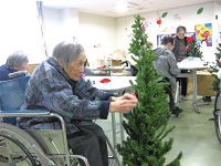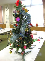 「私が飾ったところ、ちょっと地味かしら。」と心配して、たくさんキラキラを増し増しでツリーが完成しました♪