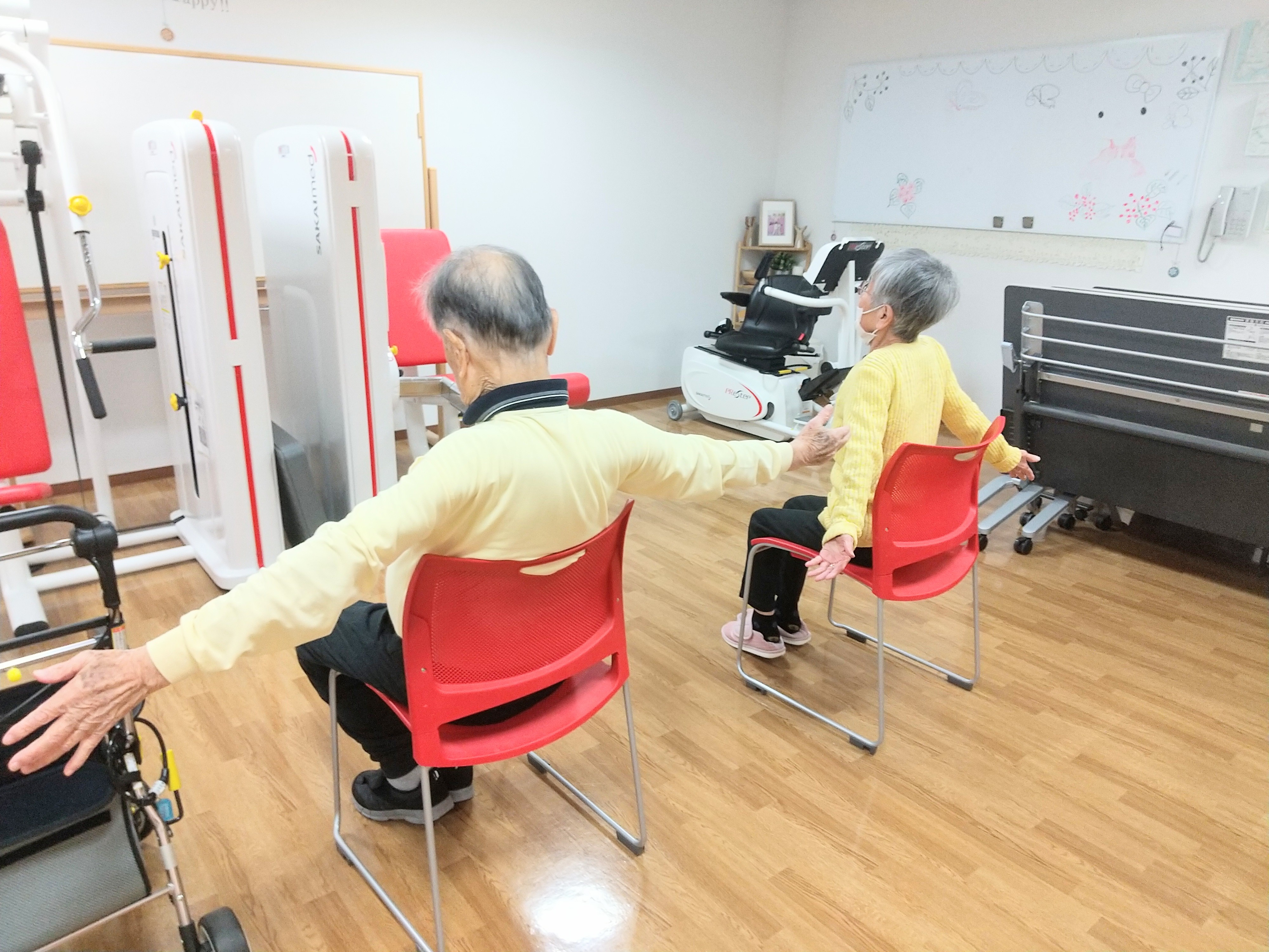 入居者様がご自分のラジカセを持ってきて、ホールで歌謡曲を流してくださいました♪