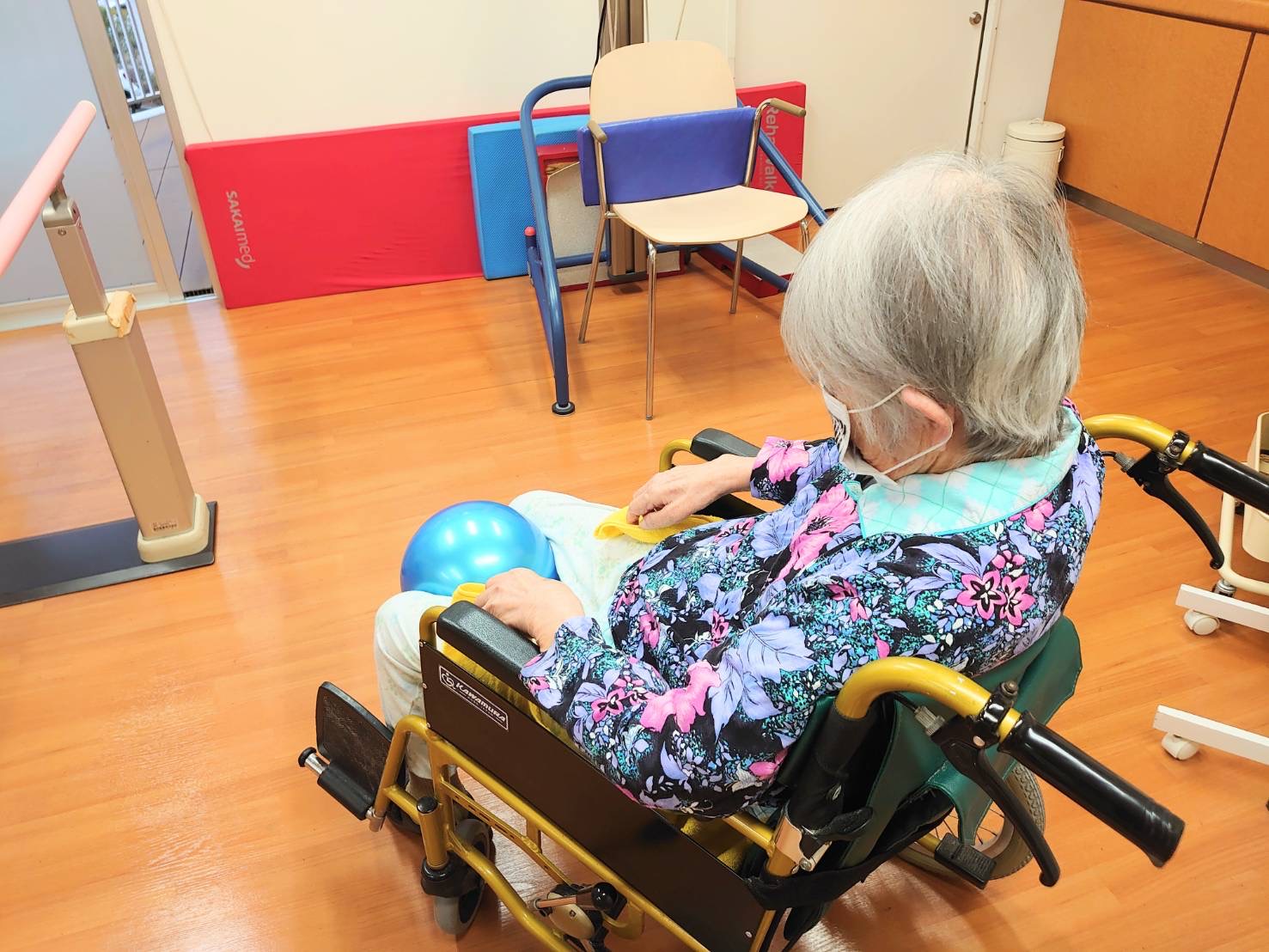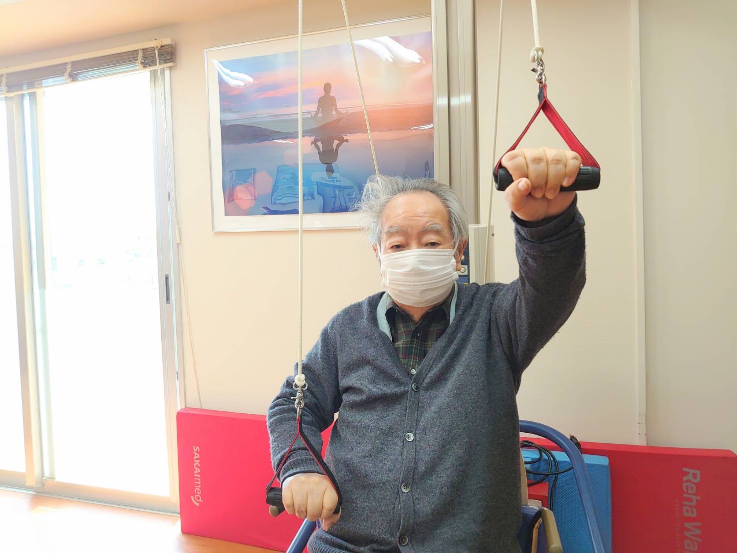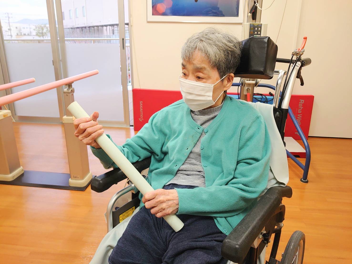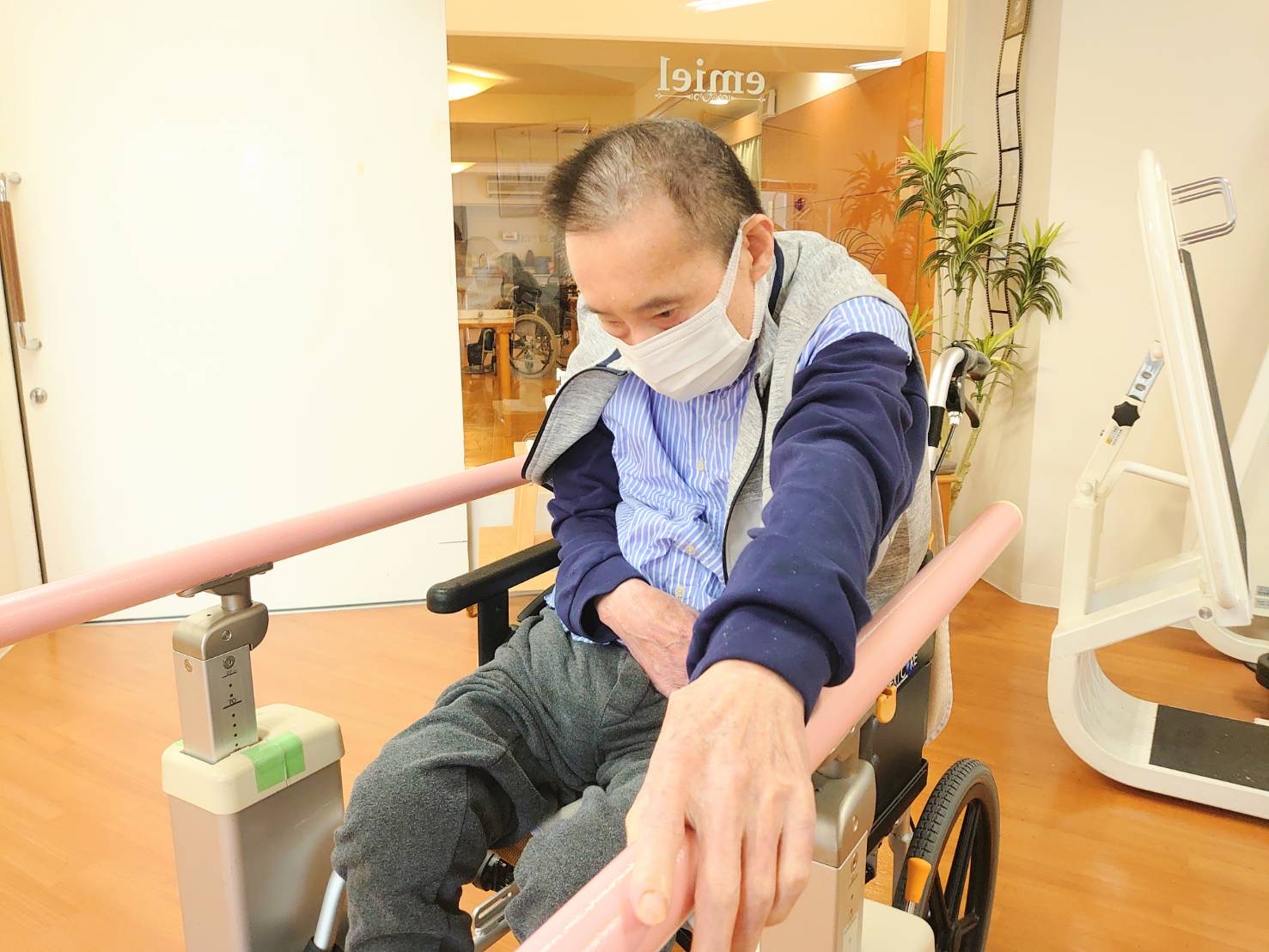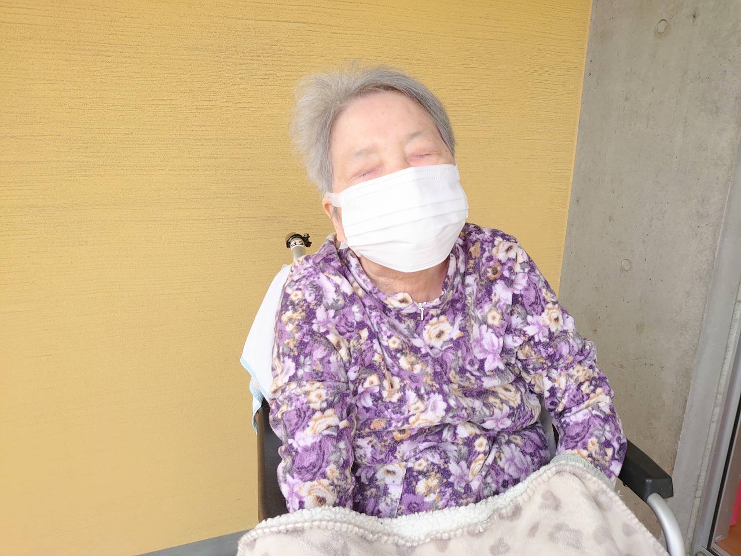 はぴね周南では立位の訓練を行ったりや外気浴に午前中出られております。外気浴に出ていると近所の方が犬の散歩をされていることがあり嬉しそうにされていました。動物を見ると癒されますね♪
