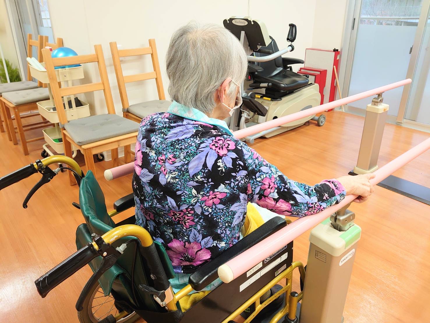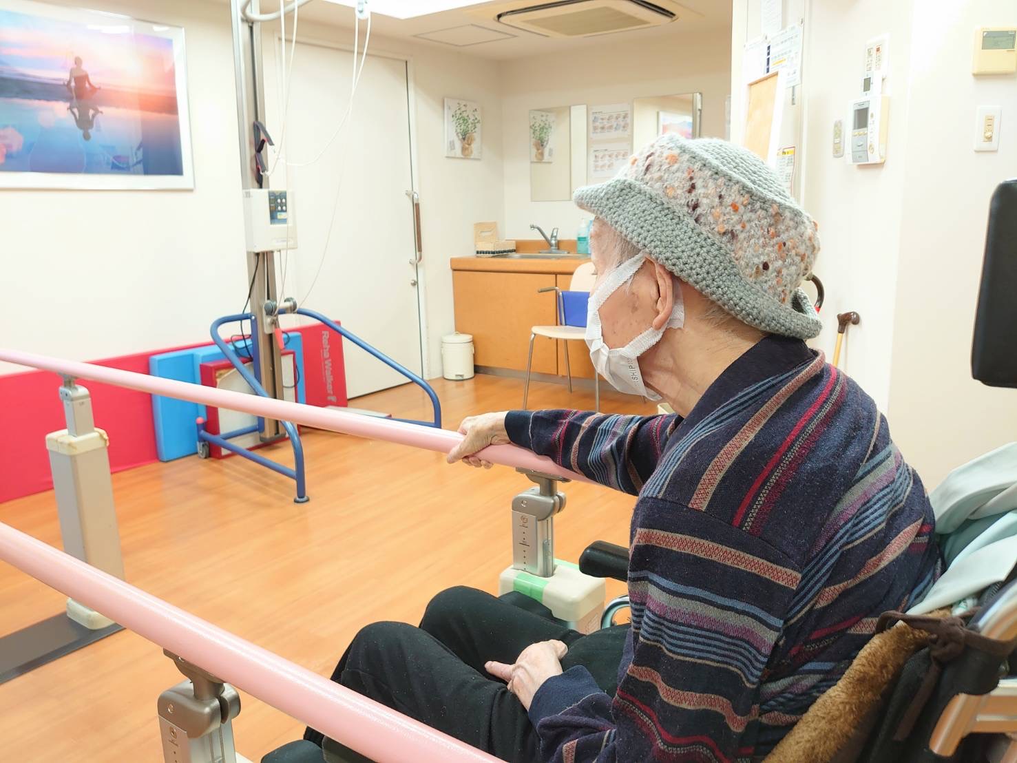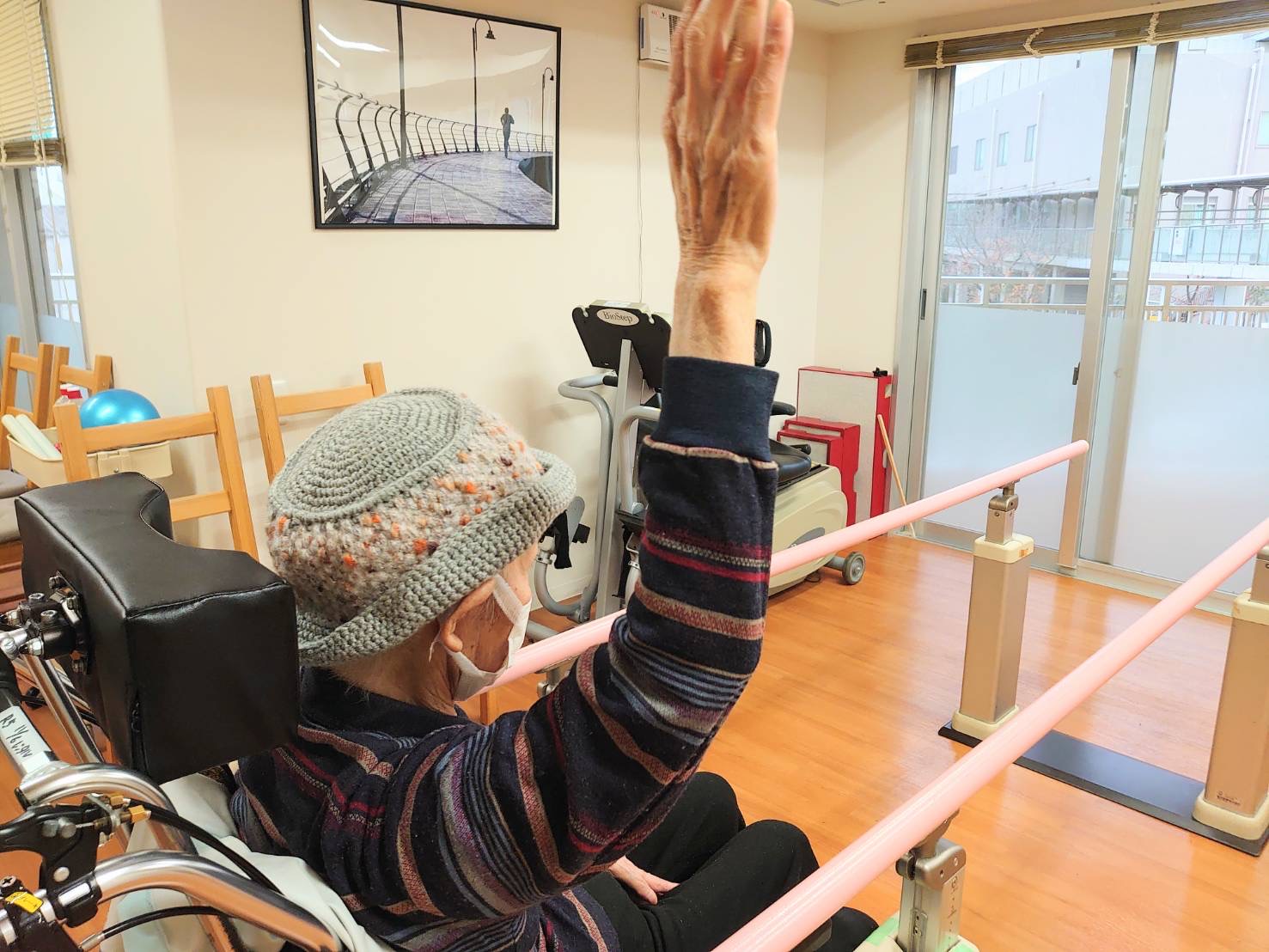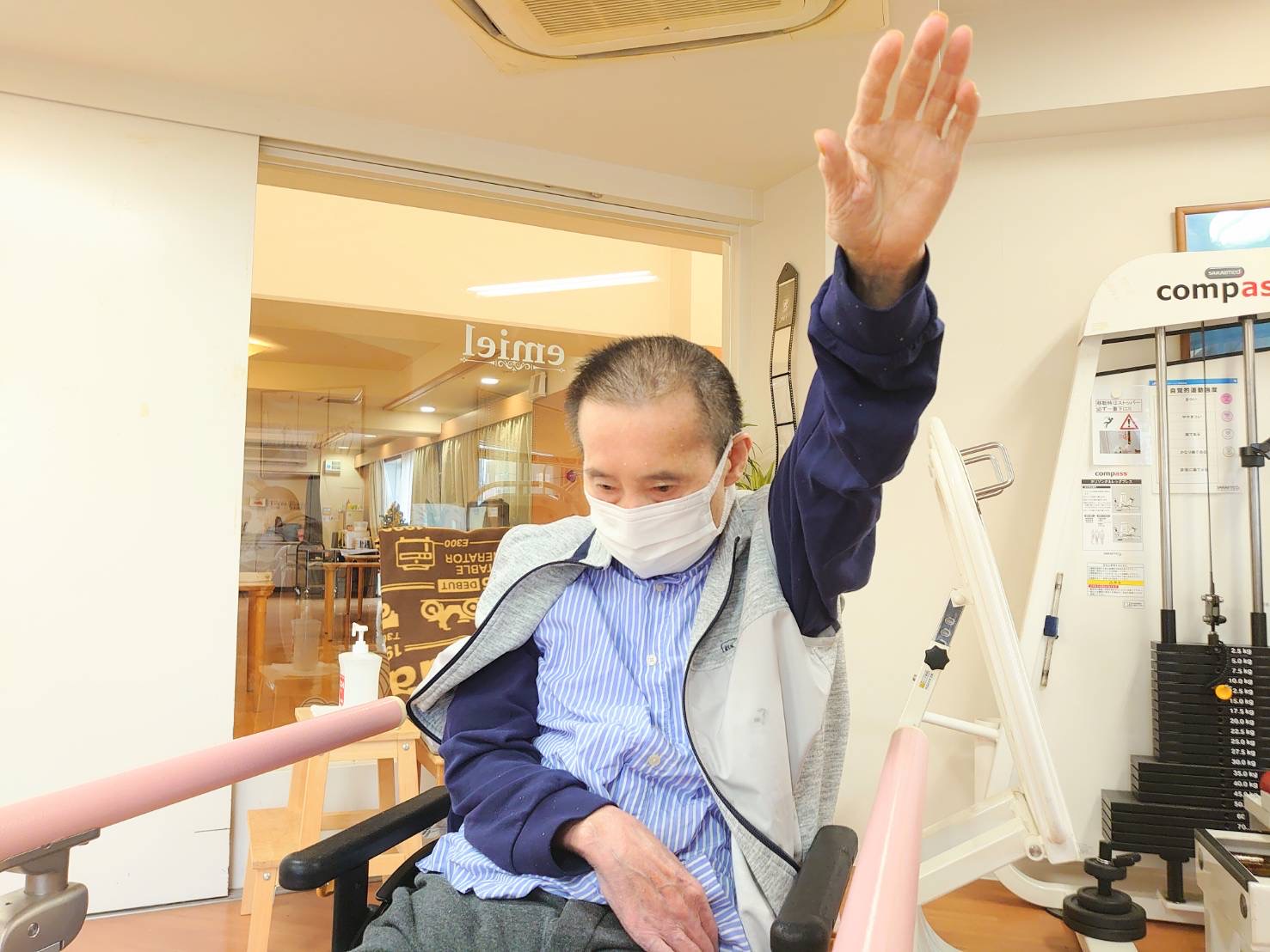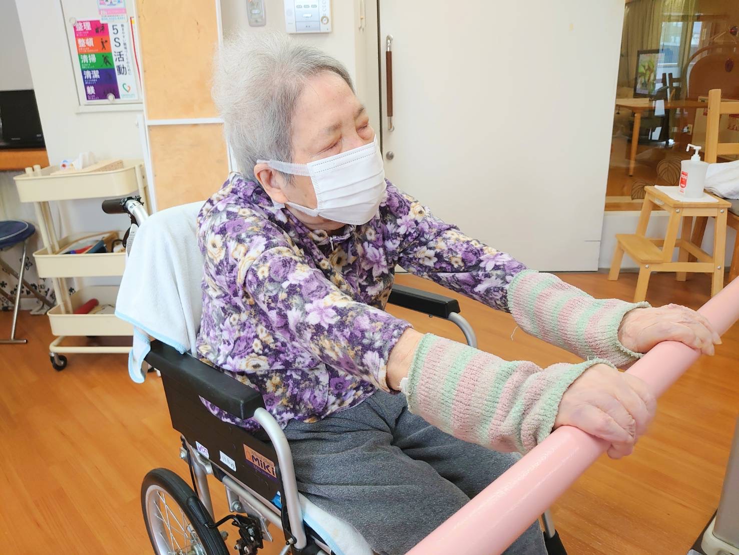 はぴね周南では立位の訓練を行ったりや外気浴に午前中出られております。外気浴に出ていると近所の方が犬の散歩をされていることがあり嬉しそうにされていました。動物を見ると癒されますね♪