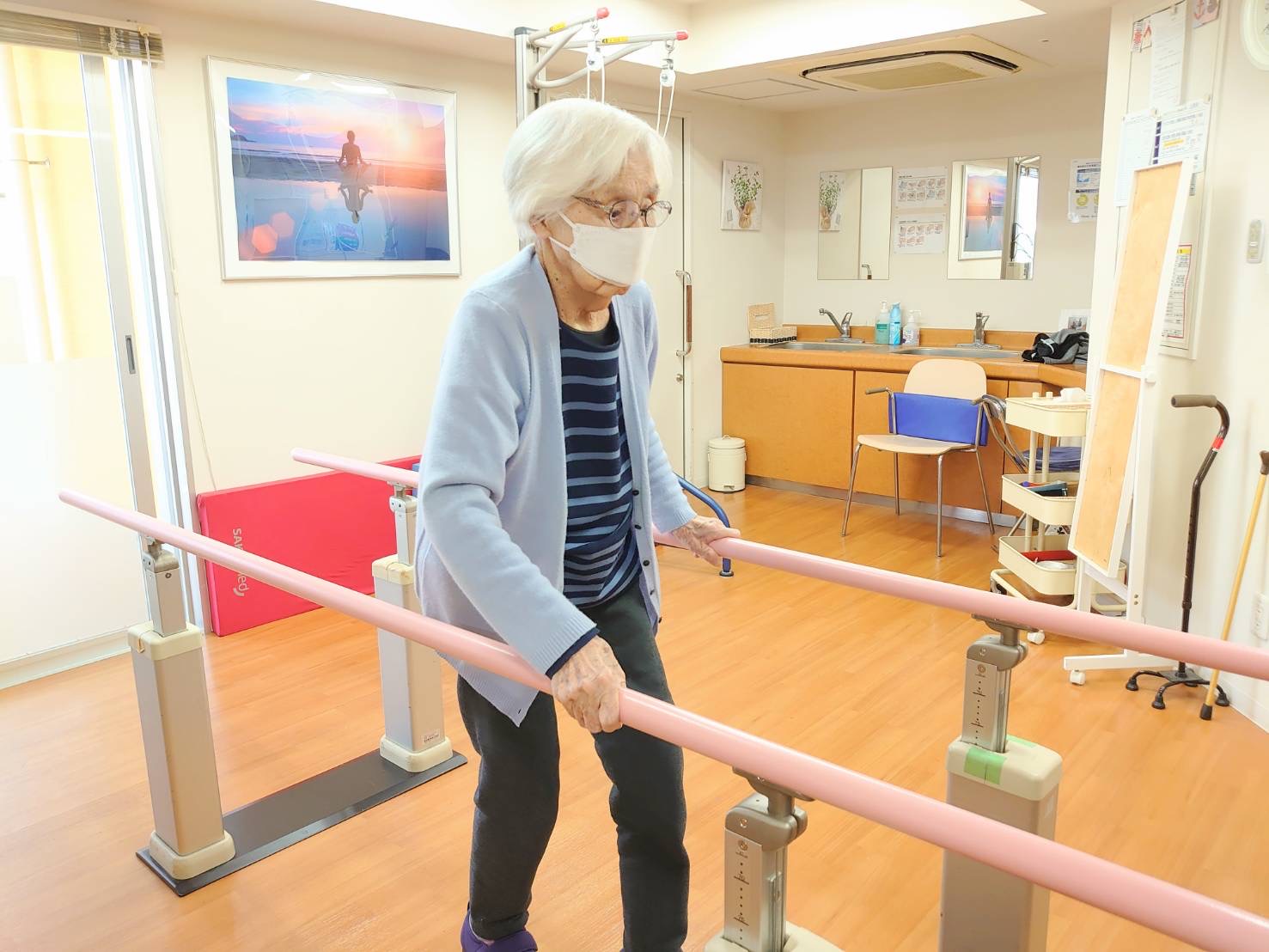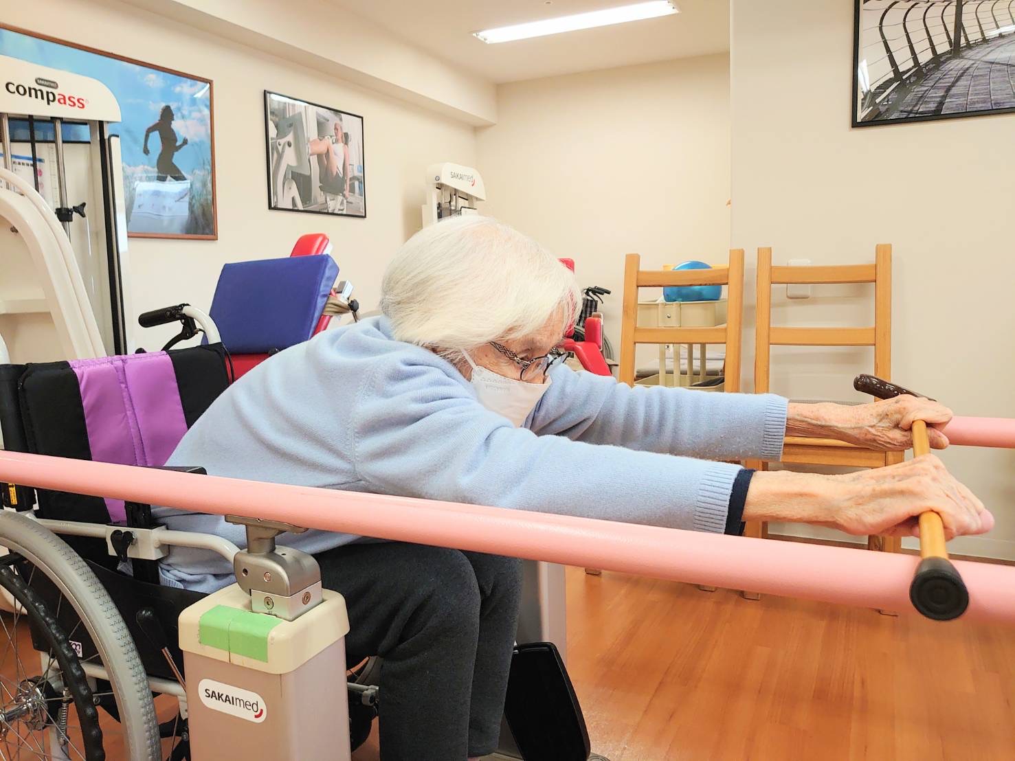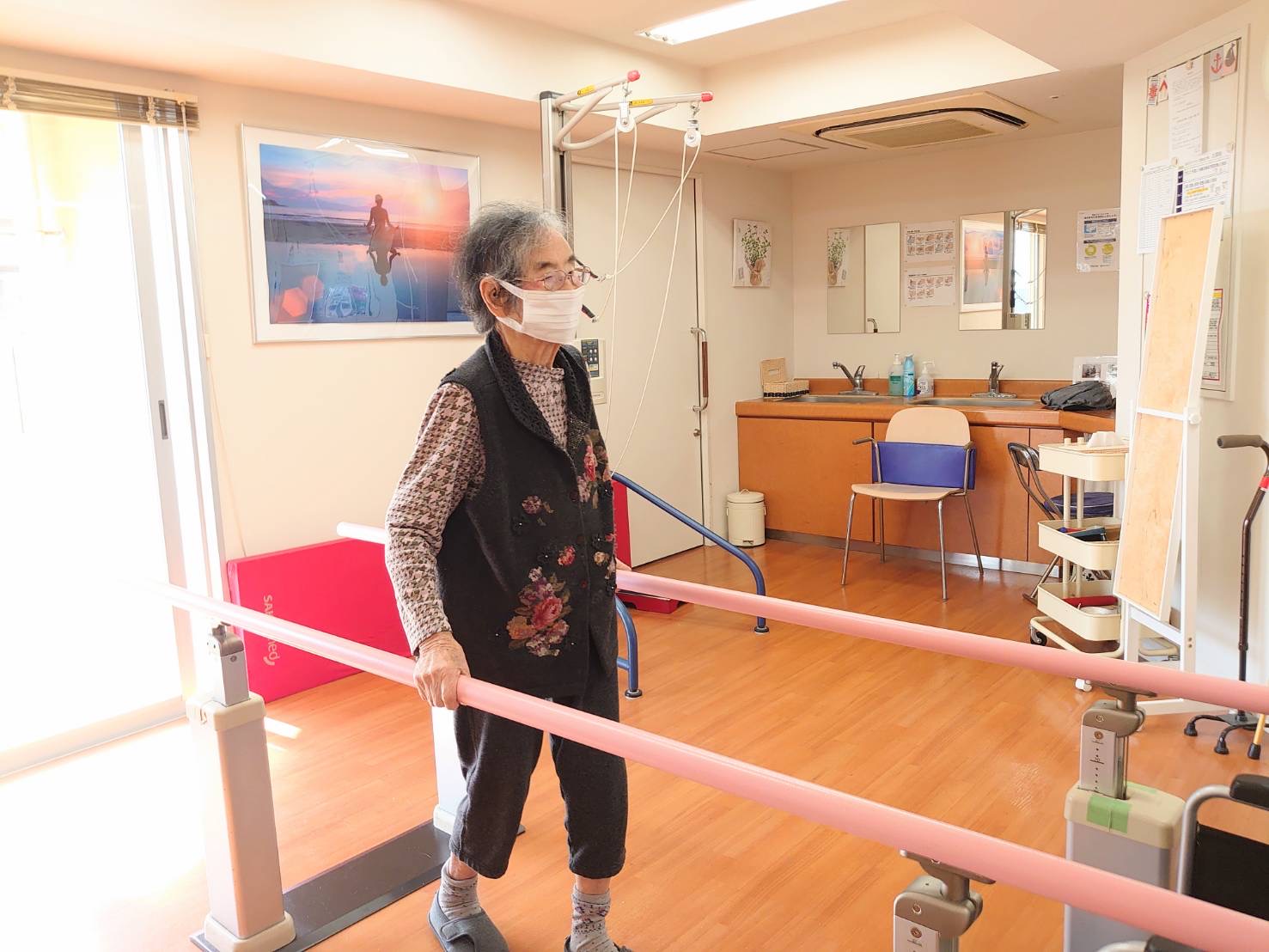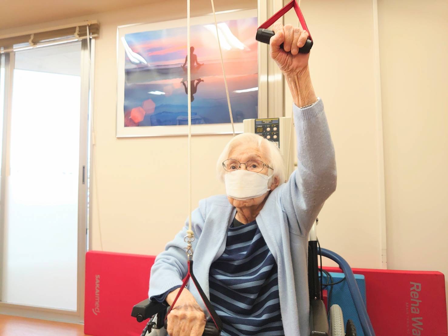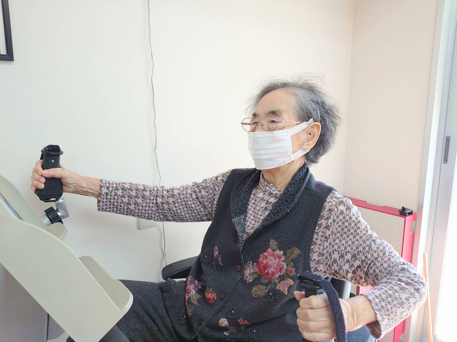 はぴね周南では立位の訓練を行ったりや外気浴に午前中出られております。外気浴に出ていると近所の方が犬の散歩をされていることがあり嬉しそうにされていました。動物を見ると癒されますね♪