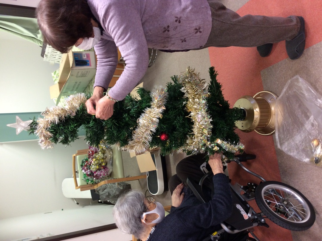 施設内に飾りつけました(^^)