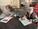 こんにちは、シーハーツ柏です。本日は、集中して取り組むプログラムとして入居者様数名で、塗り絵をしました。前回は、赤と緑を主に使用する「いちご」を題材にしましたが、今回、「ぶどう」にチャレンジ。 「前にデイサービスに通ってたときに塗り絵はしたけど、久しぶりだわ。けっこう手が疲れるね。」と、コメントがありました。1度に仕上げる必要はありません。2段階、3段階で仕上げるものよし!それぞれのペースで、リフレッシュしていただけること、有意義な時間だったと思っていただけることで十分です!(^^)