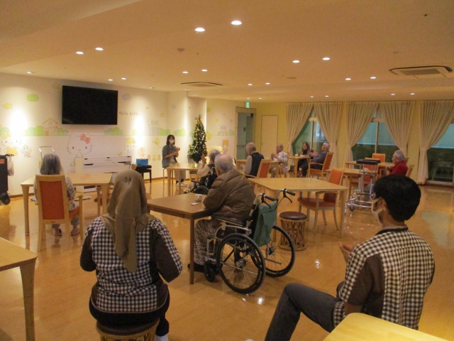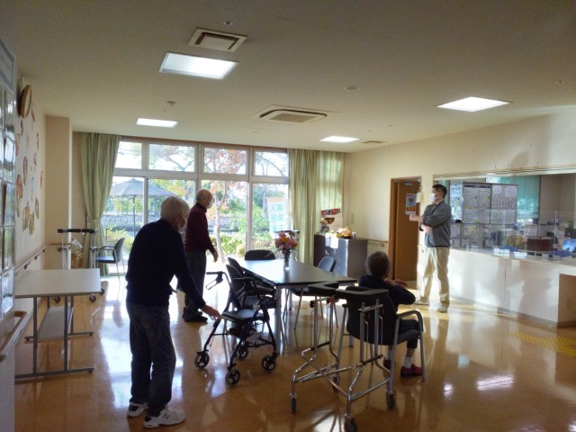 こんにちは、シーハーツ柏です。入居者様の大半は、メガネ、補聴器とのお付き合いが欠かせません! メガネのレンズを磨いていただいたり、場合によっては修理が必要なケースも。補聴器の調整もお手の物。メガネスーパーの石川様はとても柔軟な対応をしてくださるので、先月も補聴器の件で大変お世話になりました。来館時間が夕方近くになっても対応してくださる石川様。入居者様も、「本当にありがたいです。補聴器の聞こえが良くなってよかった。」と、安心の声がありました。たくさんの機材をもって訪問してくださるメガネスーパーさん。「うゎぁ。メガネがいっぱいね。」と、新しいメガネの品揃えの良さに、眼が見開きます。レンズクリーン後、メガネを受け取る入居者様、いい笑顔ですね。