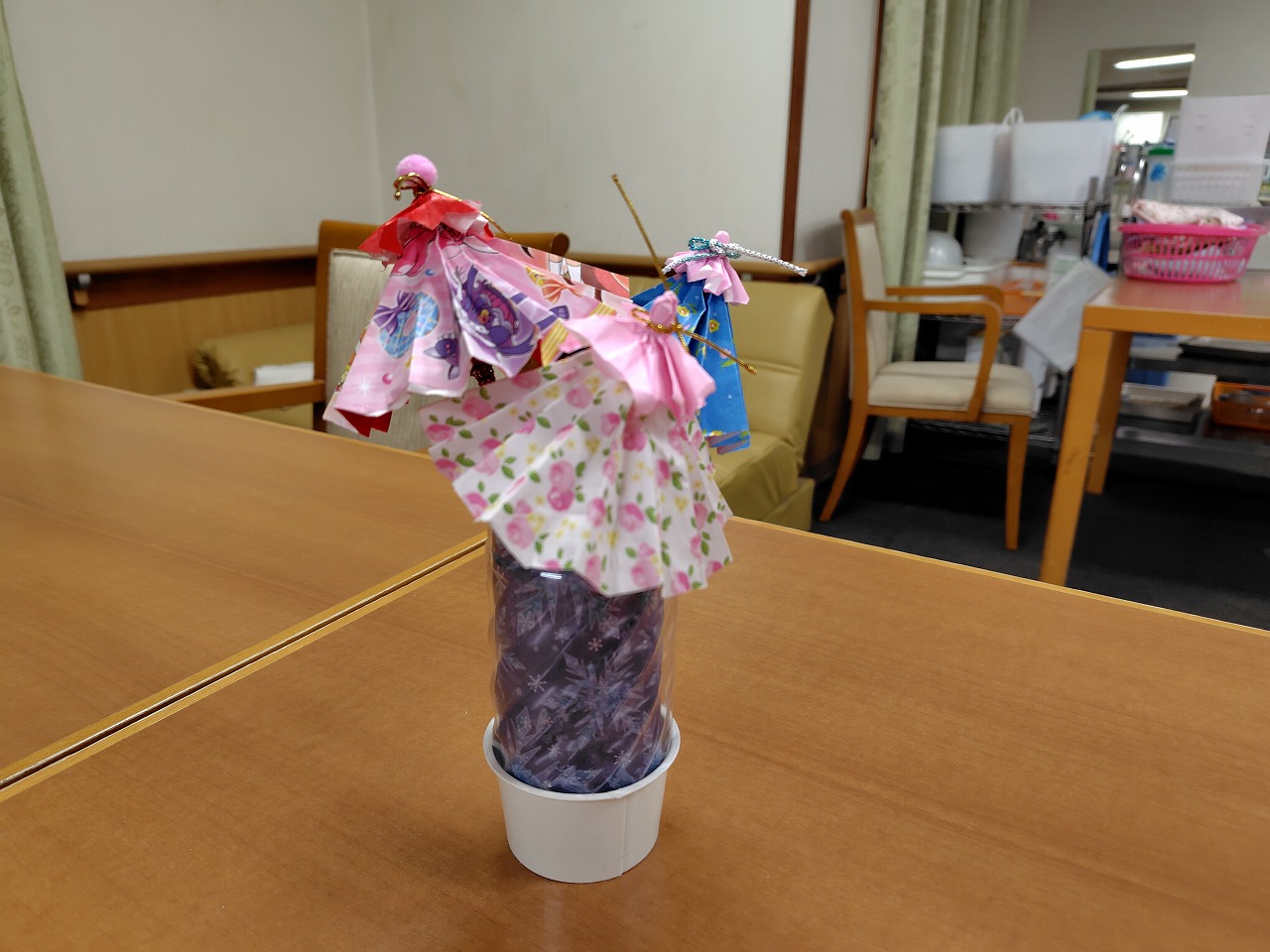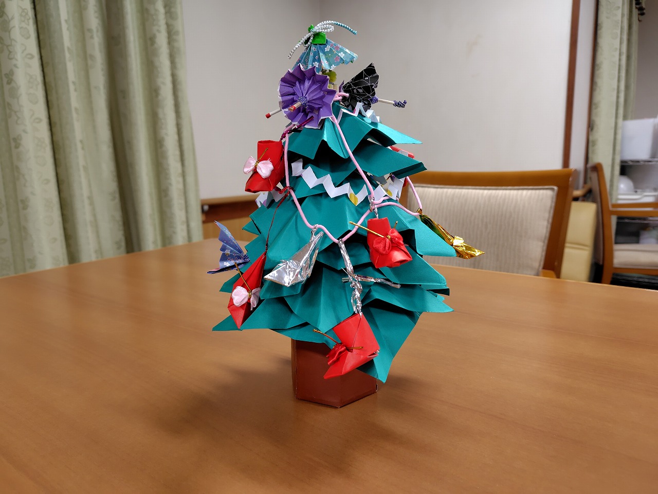 入居者様が折り紙でクリスマスツリーなどを作製したので紹介します。
