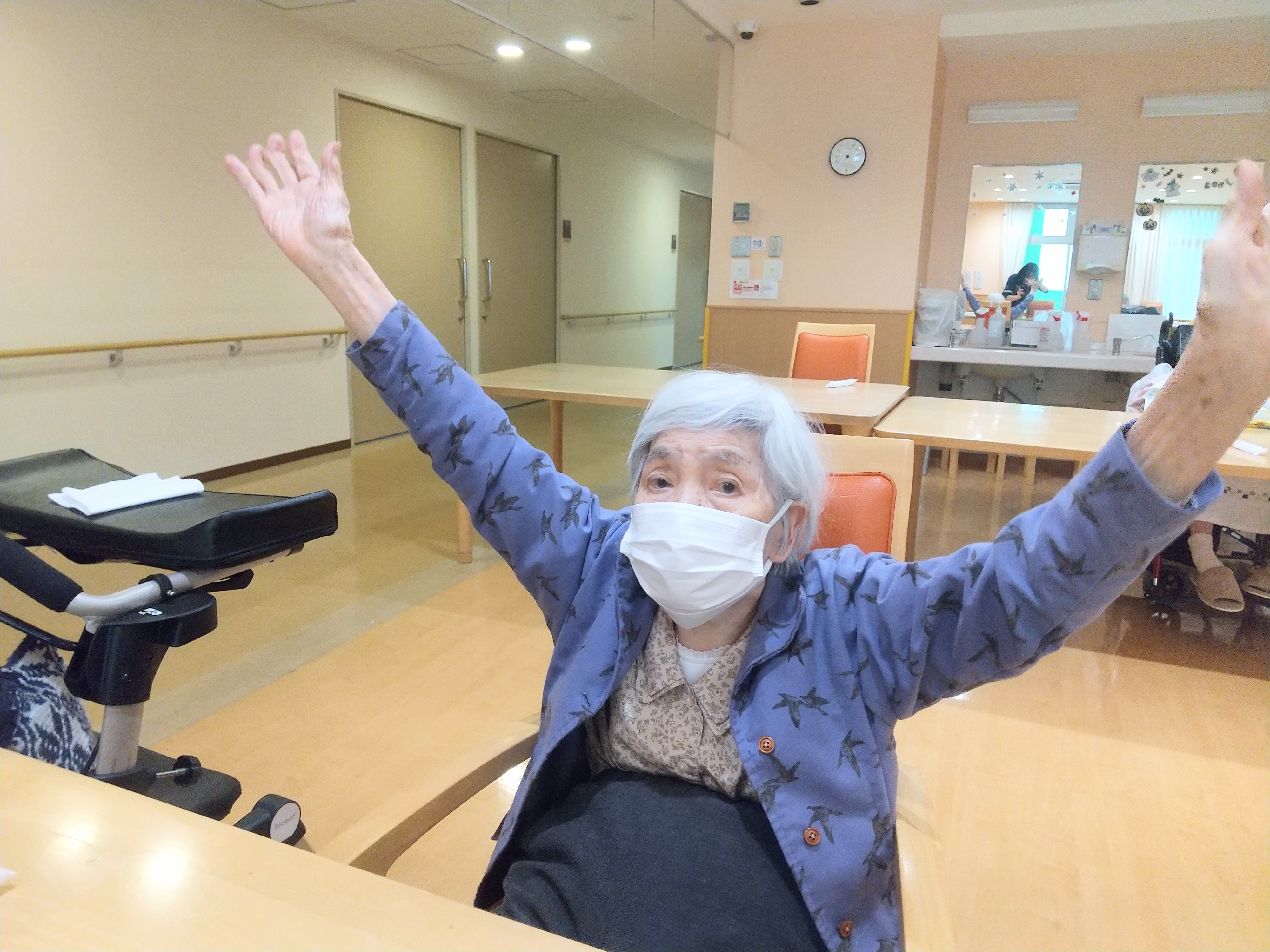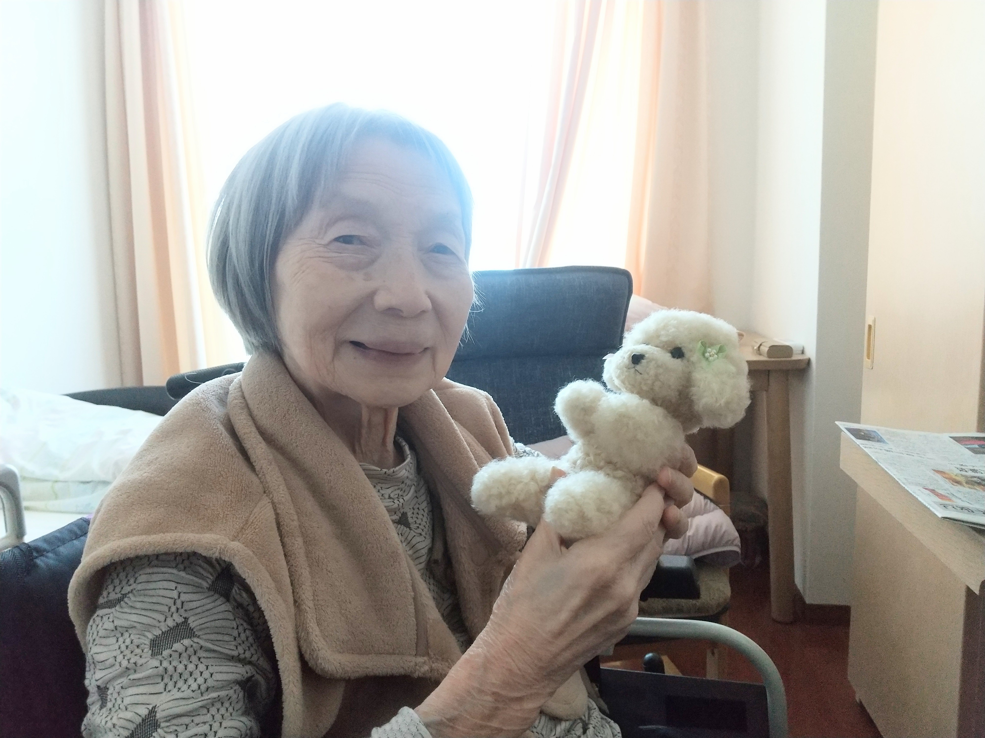クリスマスツリーを見て「あ~きれいだね~ リンゴ、星・・・きれいきれい」と嬉しそうにされています。「美味しいものも食べられるかな~」とクリスマス会が楽しみのようです。