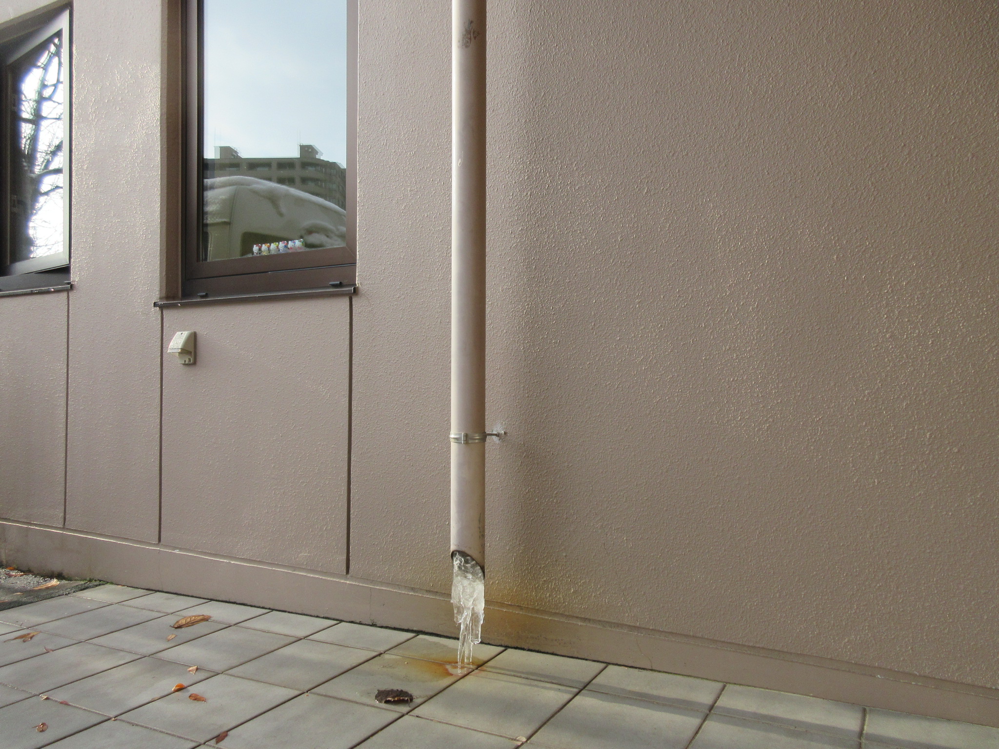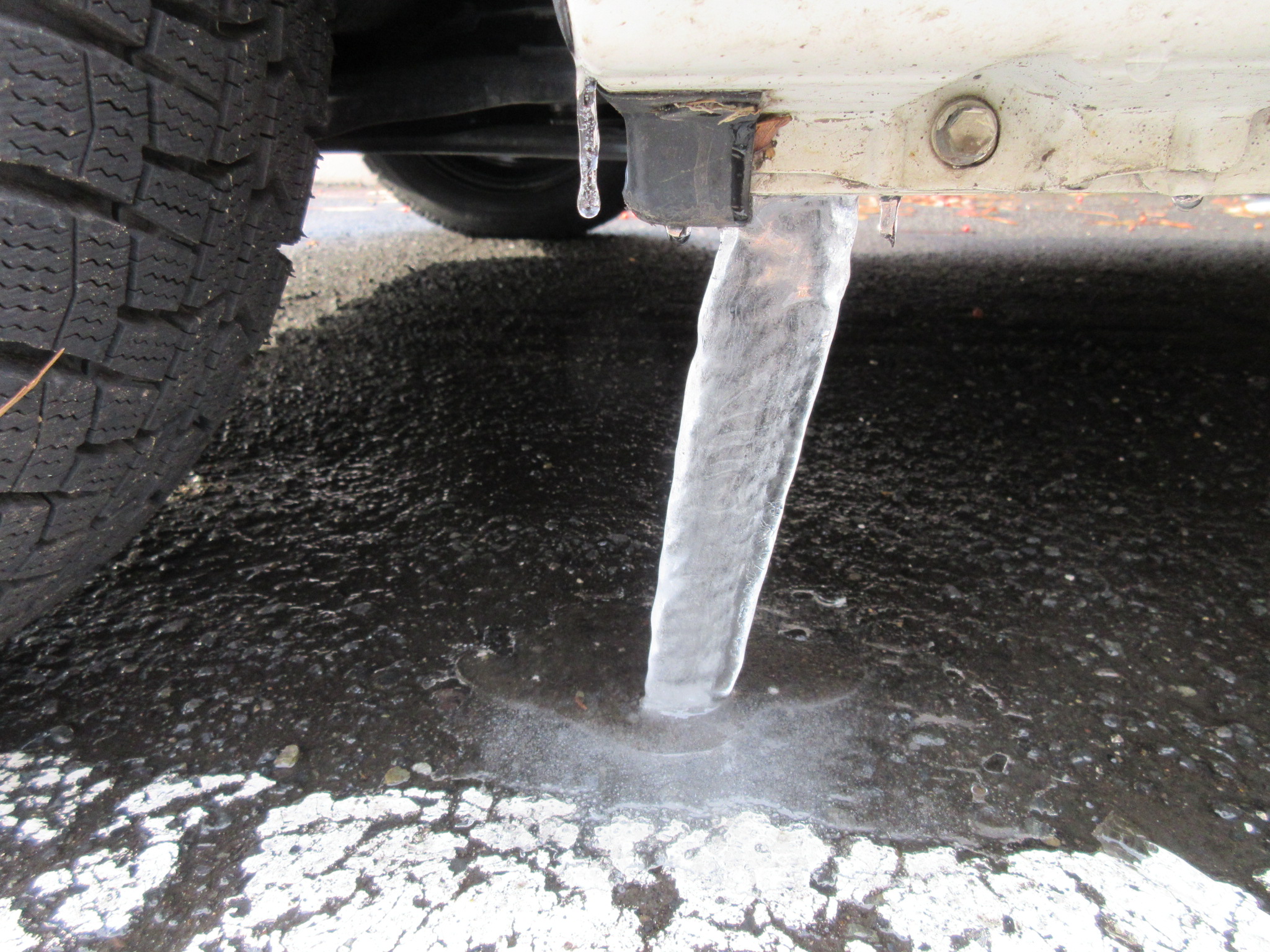 連日の氷点下+降雪、からのプラス気温、の繰り返しのために色々な場所から”ツララ”が出来上がり地面とつながりました