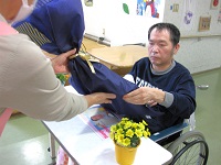 午後の体操後、入居者様に「いい夫婦の秘訣」を