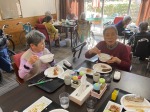 こんにちは、シーハーツ柏です。先日の秋を喰らう会のご様子続編をお伝えします。 特製窯で炊き上げた美味しいごはんは、いなり寿司に大変身! スタッフがひとつひとつ丁寧に握りました。 この窯では、具だくさんのお汁に加えて、焼き芋も完成しました。なんとこの窯、手作りピザまでできてしまうんです。焼き芋の試食をしてくださった入居者様から、「お芋だぁ。うん、うん、あつあつで美味しいよ。」と、コメントをいただきました。入居者様の協力もあって、スペシャルランチが完成しました。 「お汁は大根もよく煮えておいしいね。いなり寿司も大きくて、おなかいっぱいよ。」と、各テーブルごとに大満足の声が聞こえてきました。入居者様の笑顔もたくさん写真におさめることができたので、Part3でも紹介します。