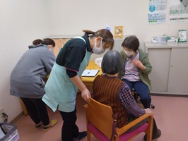 隣りのデイサービスから掛け声が聞えてきたので、見に行ってみました。