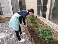 今日のお写真は・・・もう少しでお昼御飯なので戻りましょ~と職員が迎えに来たところ。