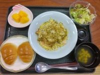 献立のメニューは、カレーライスとシーザーサラダ、フルーツヨーグルトです。