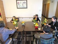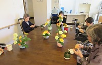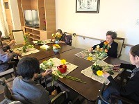 席を寄せ合って、女性達が並んでアレンジを楽しんでいると