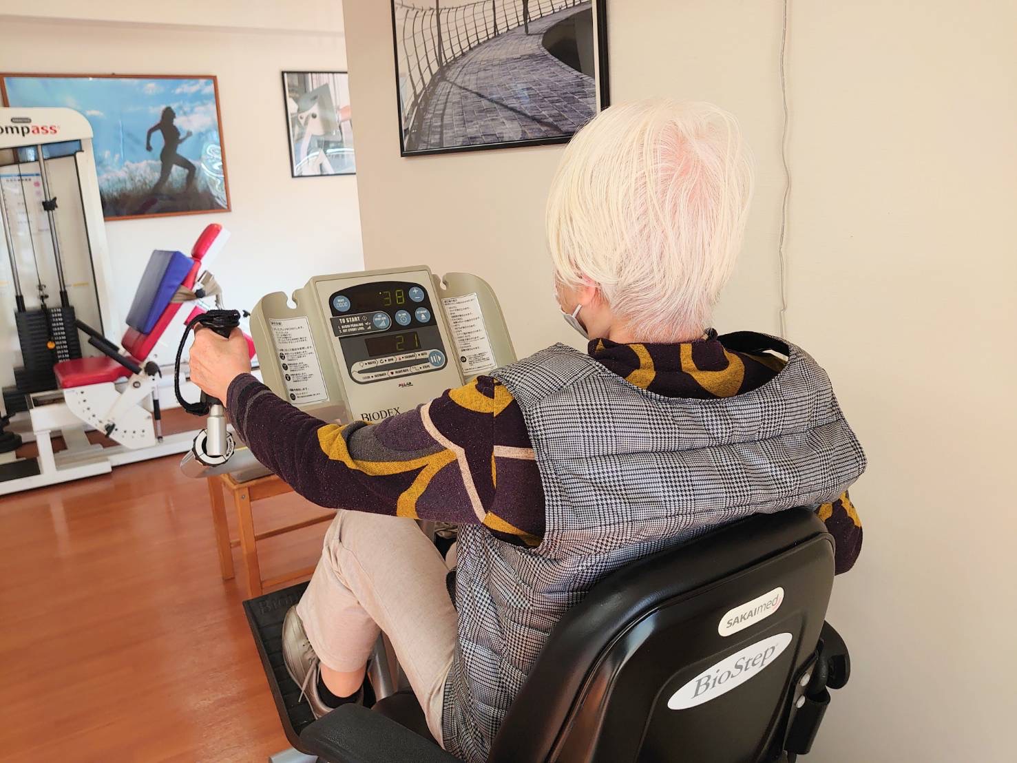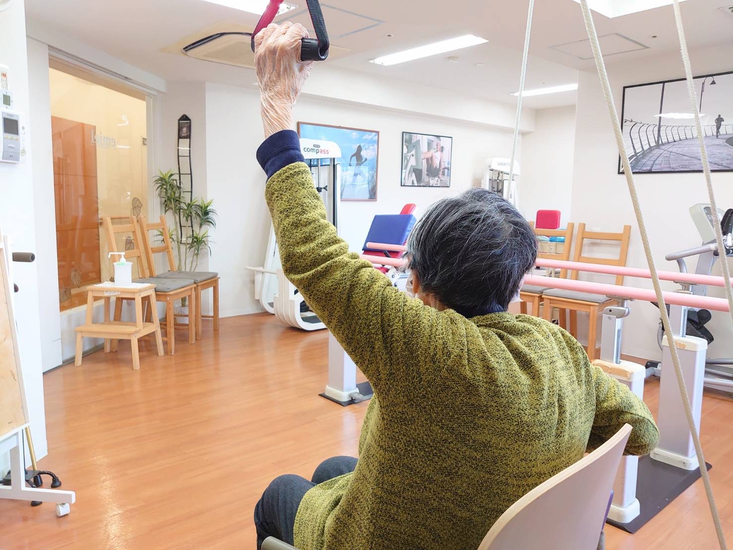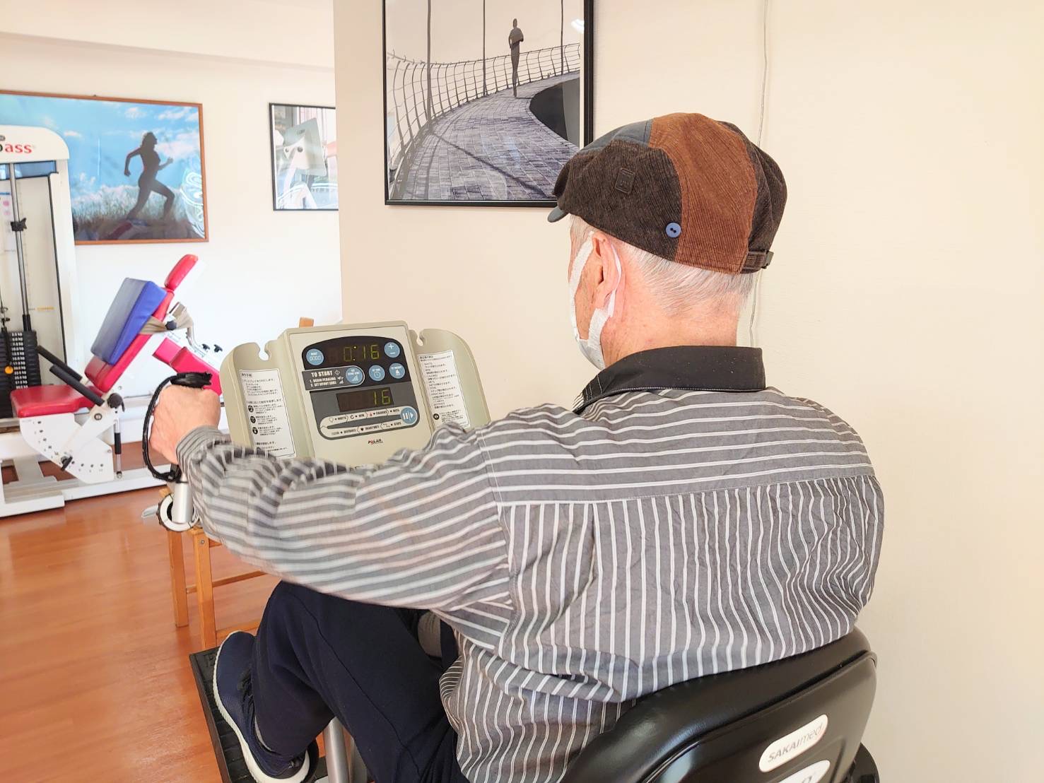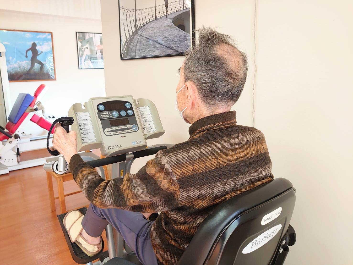 イスからの立ち上がりは、意外と力を使うものです。重心の移動が非常に重要です。