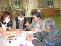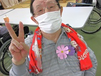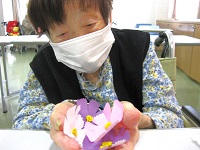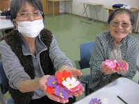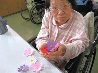 私が見本で作ったコスモスを入居者様に見てもらったら、「あれ~優しい色でかわいいね~。」と言っていただけました(^^)