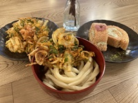 今回の食イベントは、春のかき揚げうどん!!桜のロールケーキ