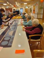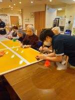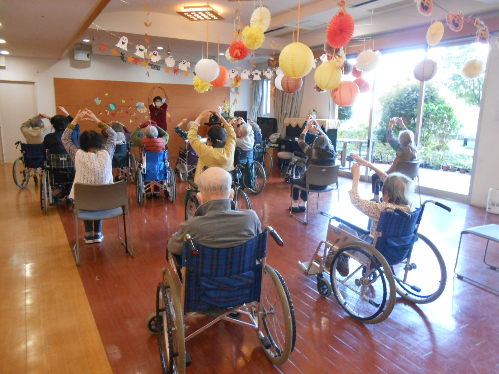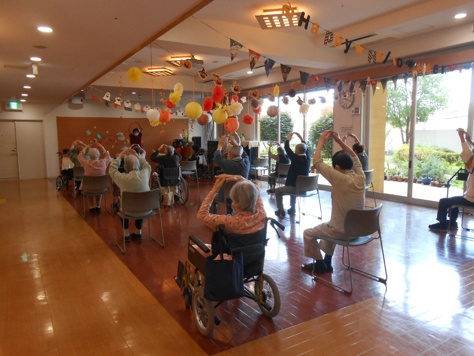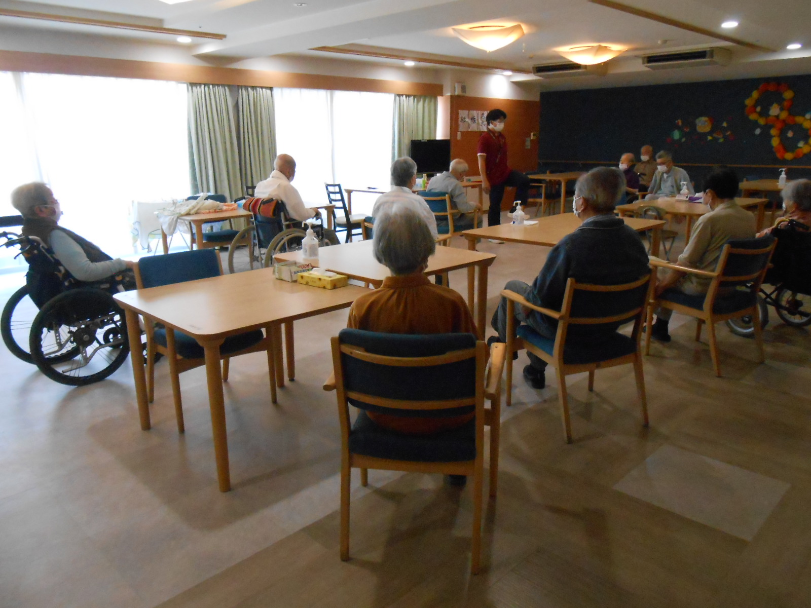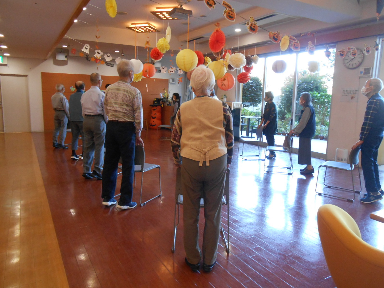 今日のアクティビティは「折り紙」でハロウイン🎃のバスケット作りに挑戦していただきました。スタッフも見本を見ながら一生懸命に伝えていました。「お菓子入れにしよう」とか「飴を入れよう」と、出来上がりに満足の皆様でした。