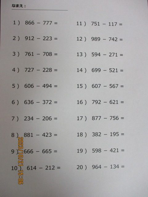 明日の頭の体操の問題をご紹介します♪ こちらは3桁の引き算問題です。3桁の計算問題はちょうど良い脳トレになります♪ 出来るだけ暗算で回答してみましょう!