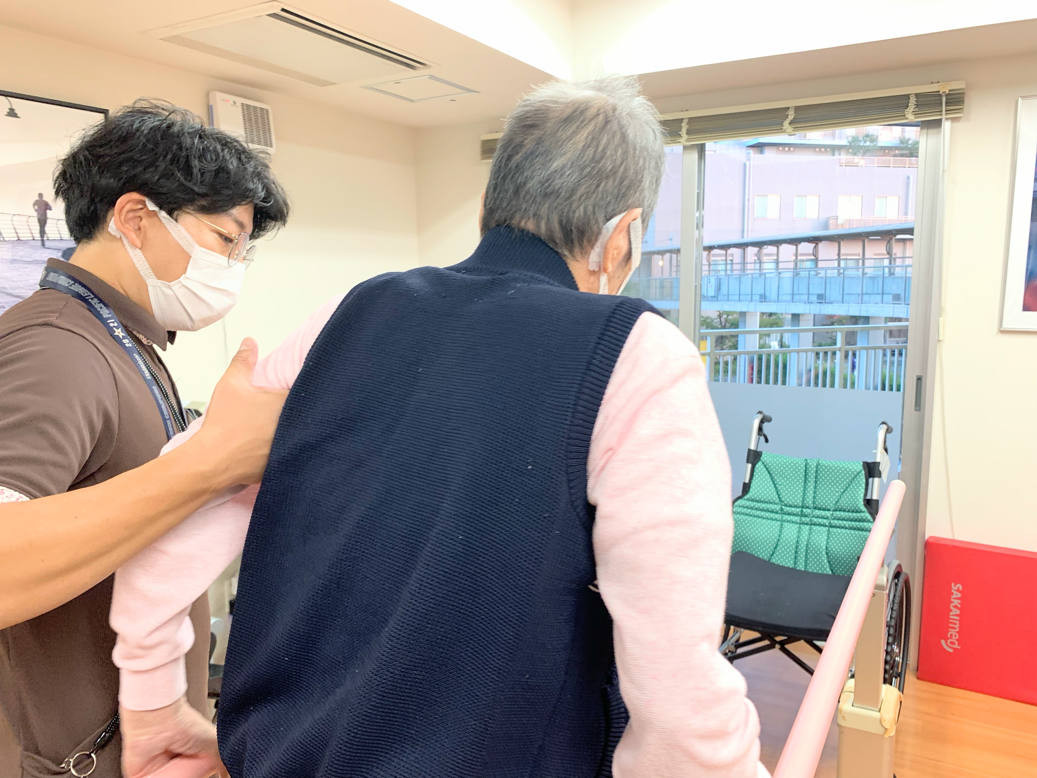 腕を伸ばしたり顔の筋肉を動かしたりされています(^^)/
